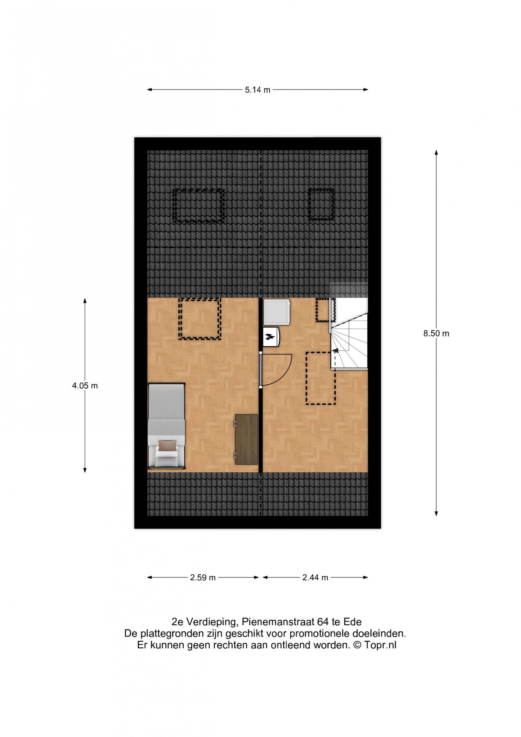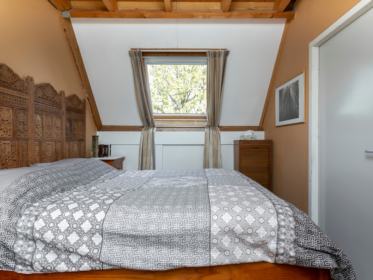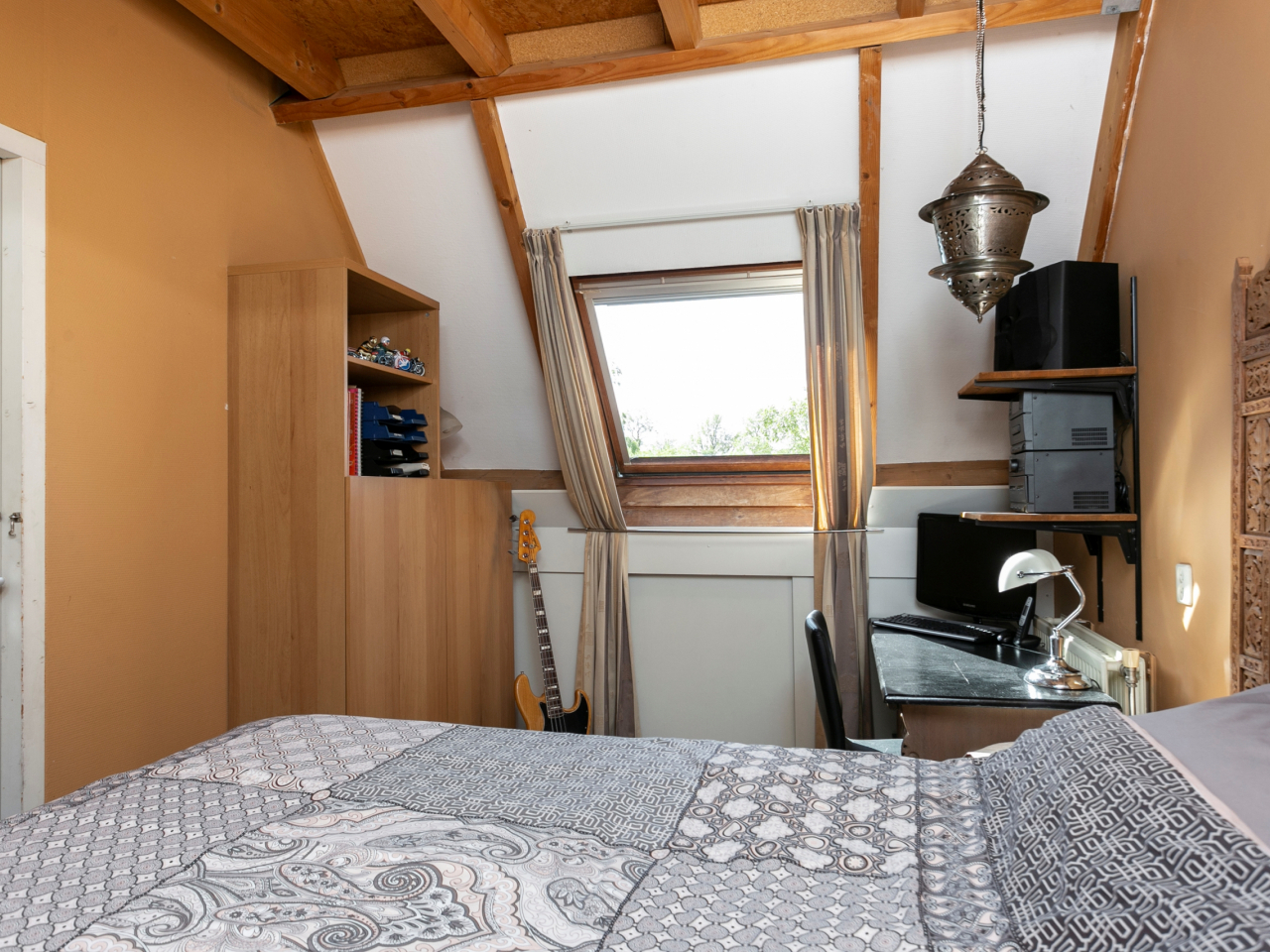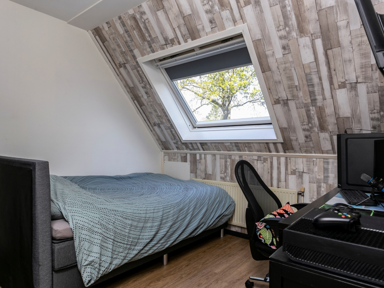 Vierde slaapkamer met 2 dakramen en opbergruimte achter de knieschotten.