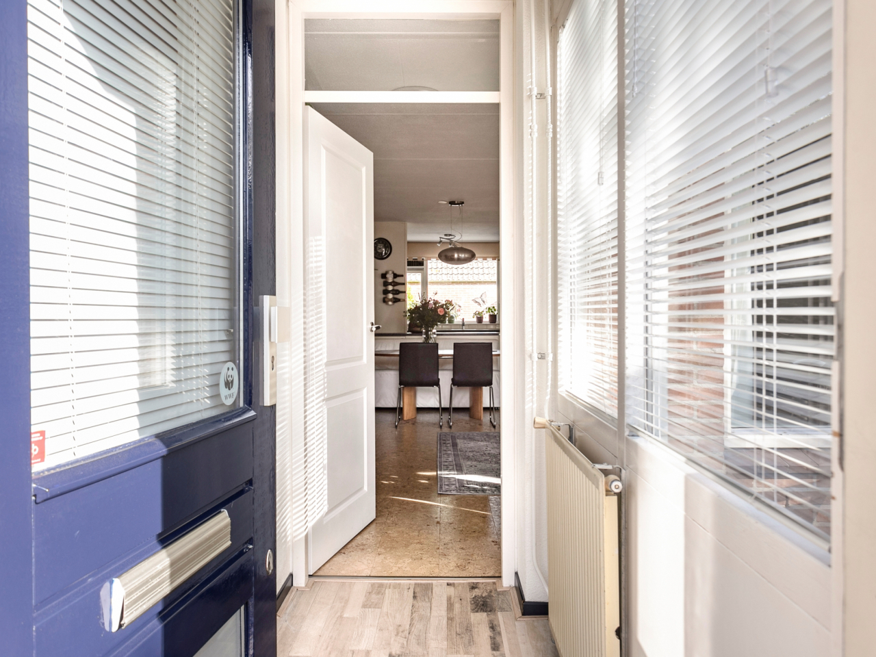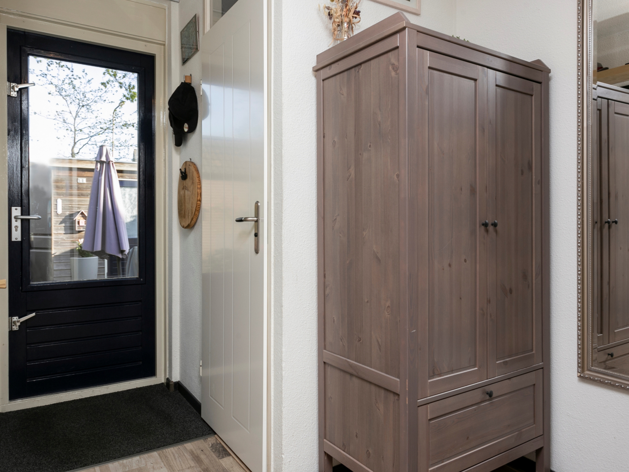 Licht voorportaal met garderobe-nis en meterkast.