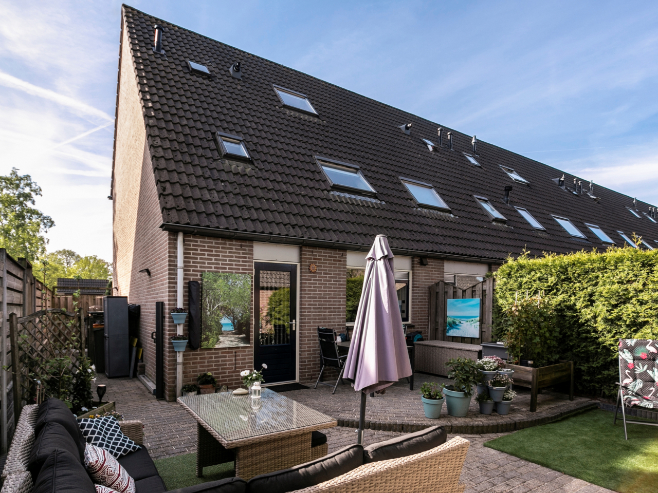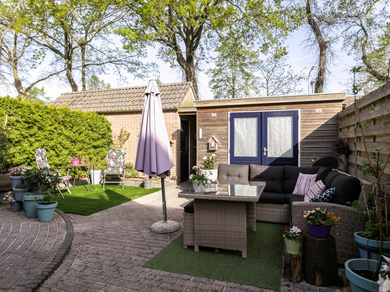 - Onderhoudsarme achtertuin met zowel een voor- als zij-ingang;