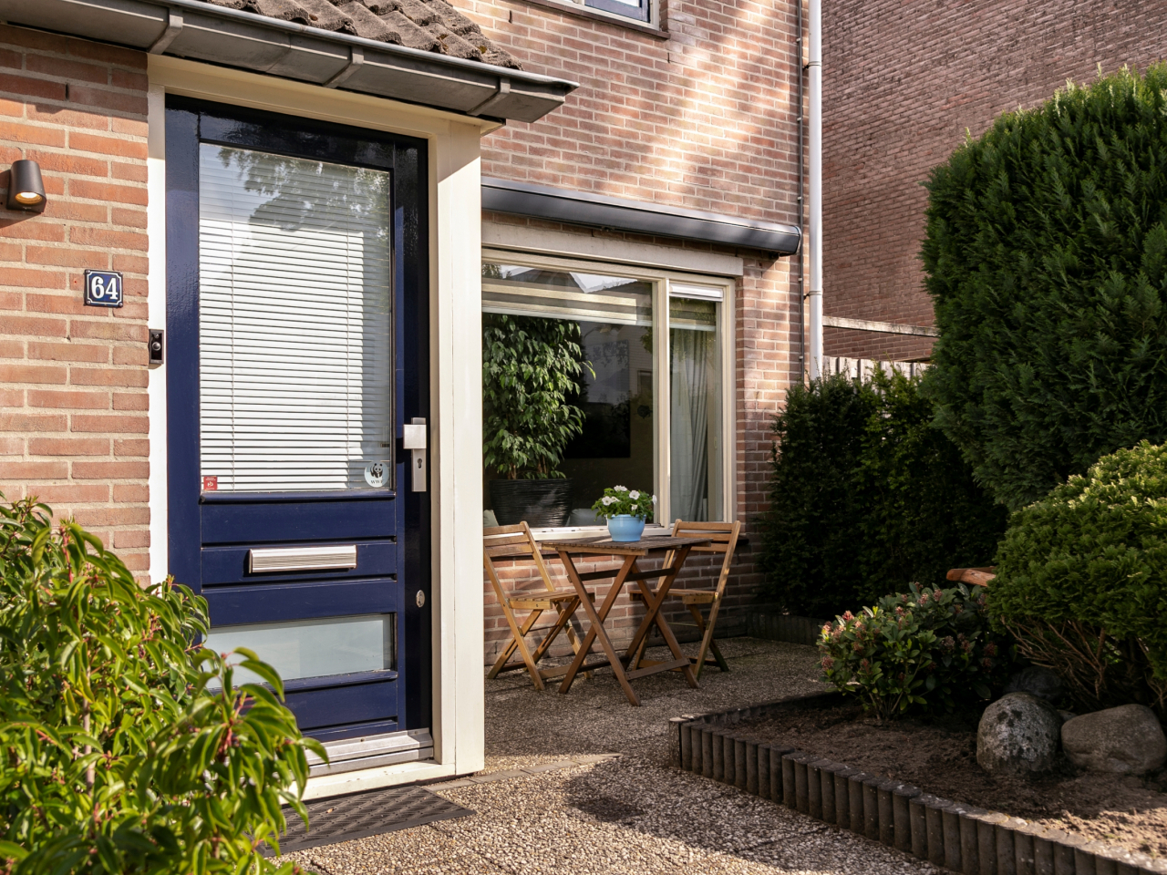 Gezellige voortuin met ruimte voor een zitje.