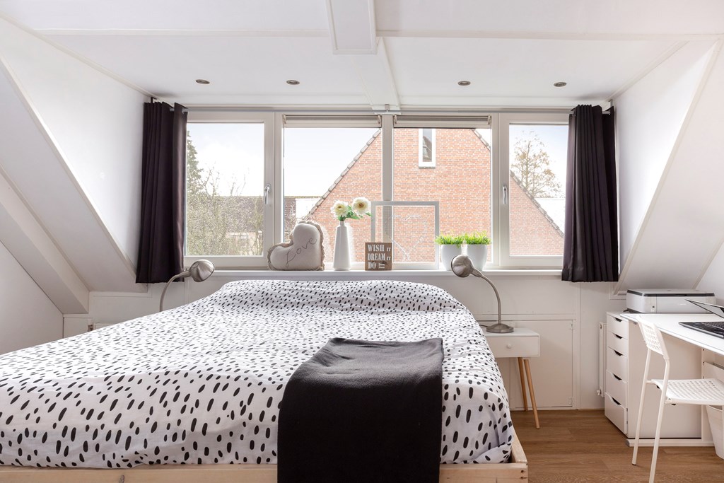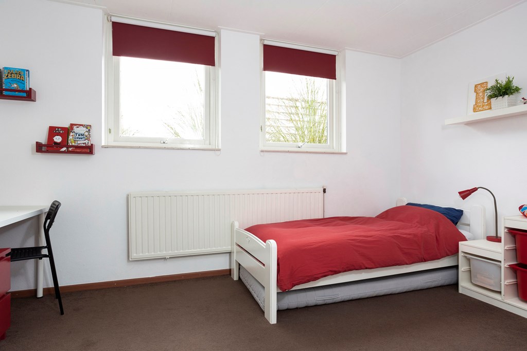 Ouderslaapkamer met inbouwkast, welke is voorzien van een brede kunststof dakkapel (2007) met elektrische screens.