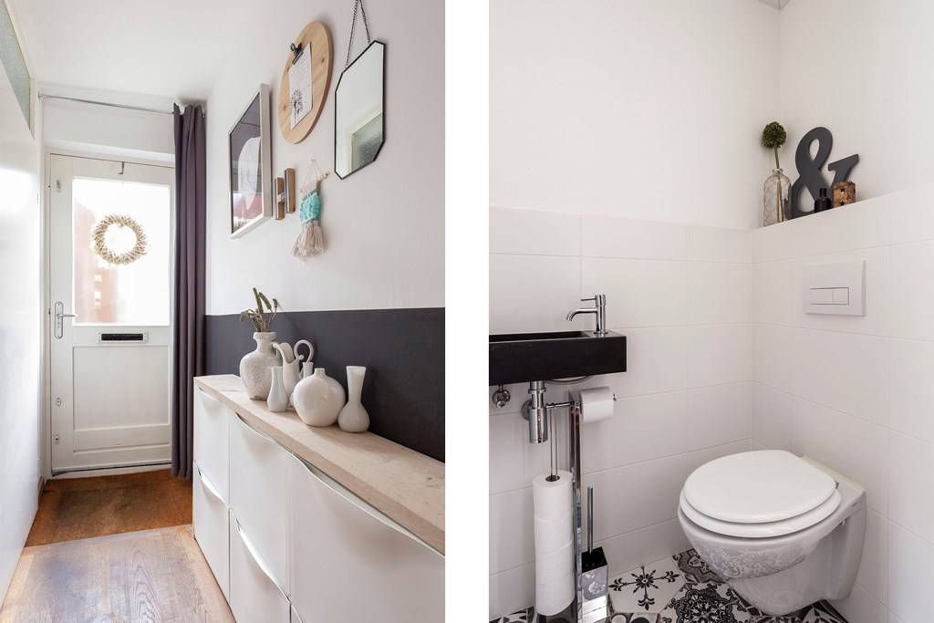 Entree, hal, toilet met fonteintje (2017) en meterkast met 6 groepen.