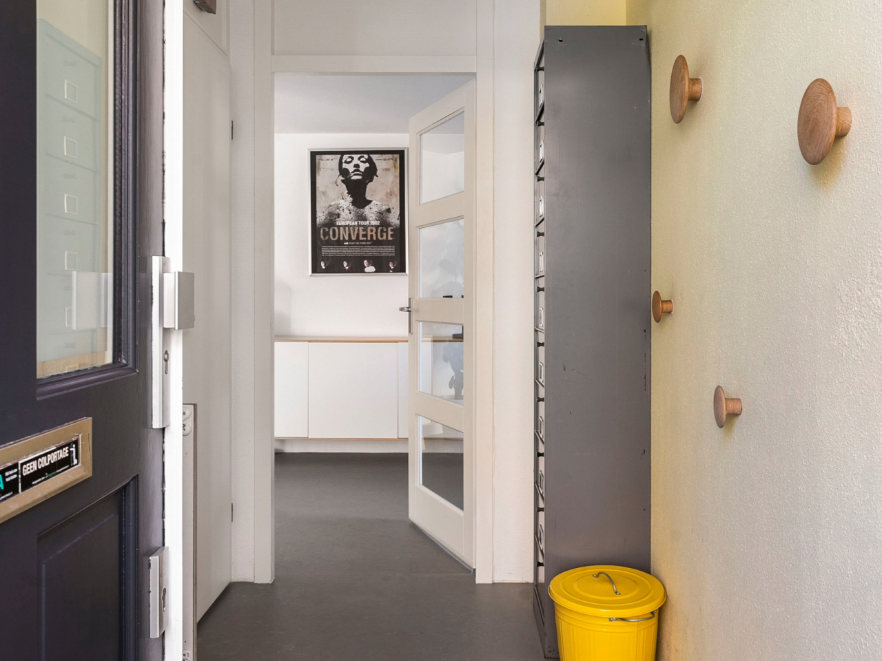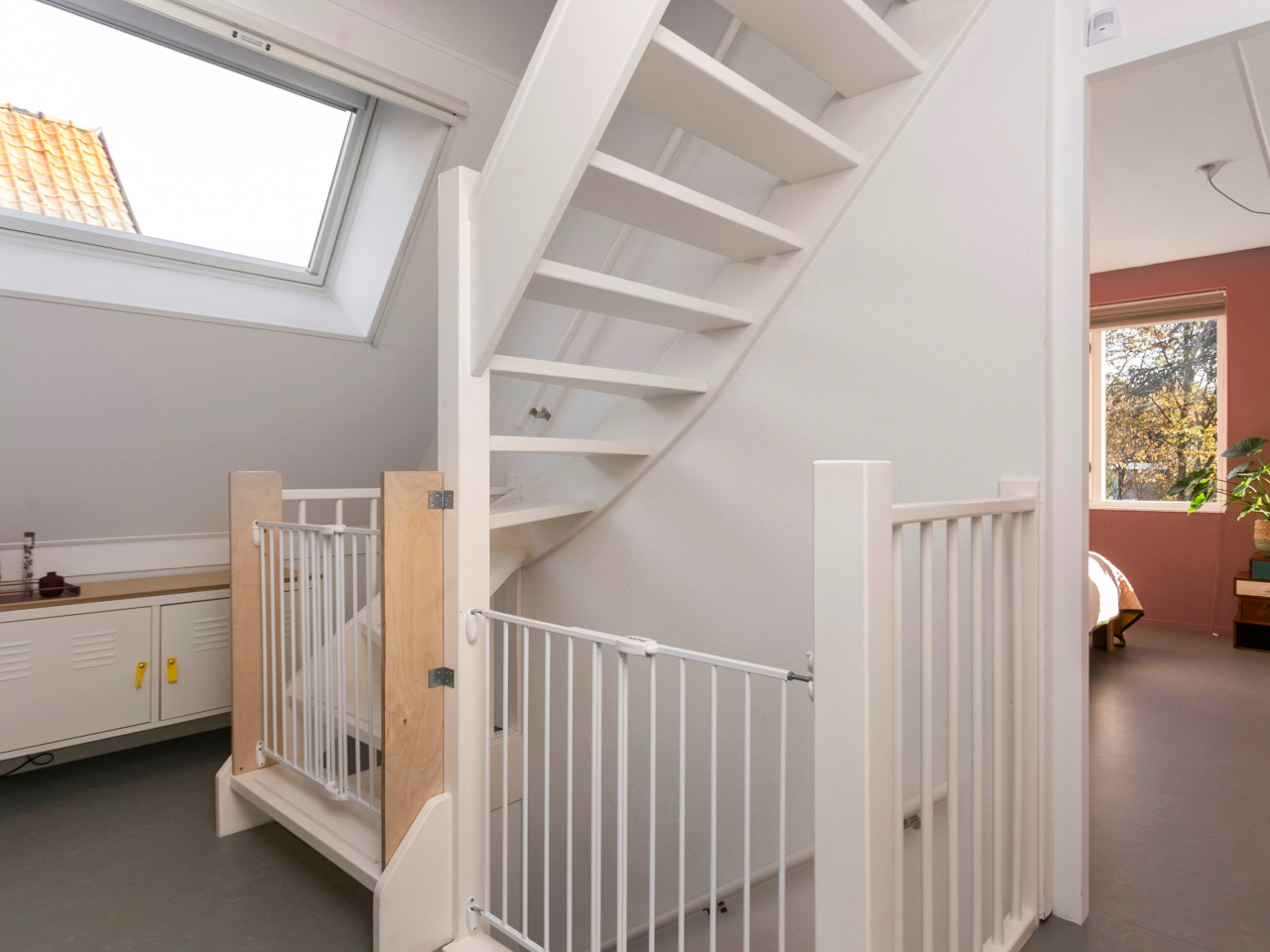 Overloop met groot dakraam dat voor veel daglicht zorgt.