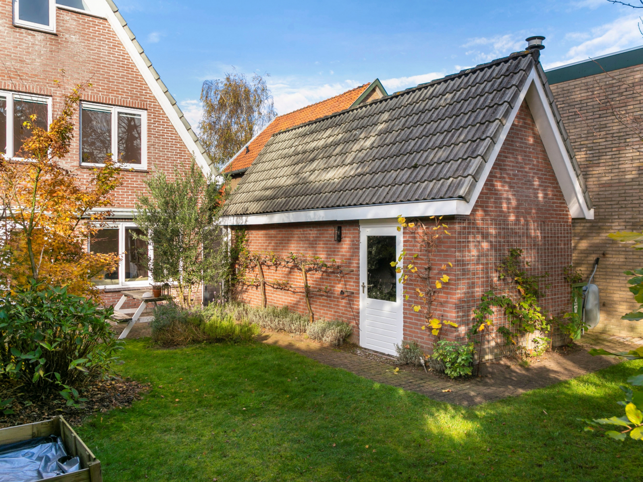 Nette voortuin met eigen oprit voor 2 tot 3 auto’s en een grote vrijstaande stenen garage/berging met zadeldak en bergzolder. De groene achtertuin met vrij uitzicht is gelegen op het zuiden, is geheel omheind en biedt veel privacy.