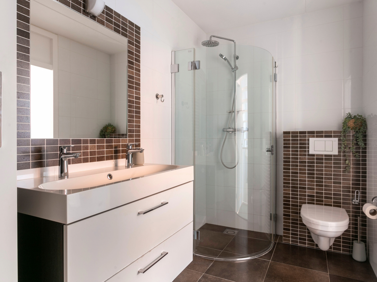 De ouderslaapkamer is aan de achterzijde van de woning gelegen en beschikt over een grote vaste kastenwand. Daarnaast zijn er nog twee slaapkamers gelegen aan de voorzijde van de woning. De moderne en complete badkamer is voorzien van een dubbel wastafelmeubel, regendouche, ligbad, 2e toilet en van een handdoekradiator.