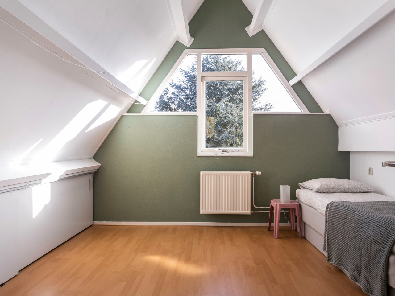 Twee ruime en hoge slaapkamers waarbij de ene aan de voorzijde en de andere aan de achterzijde van de woning gelegen is. Er is veel opbergruimte achter de knieschotten. Deze kamers bieden ook de mogelijkheid om als sportruimte, thuiswerkplek of hobbykamers te gebruiken.
