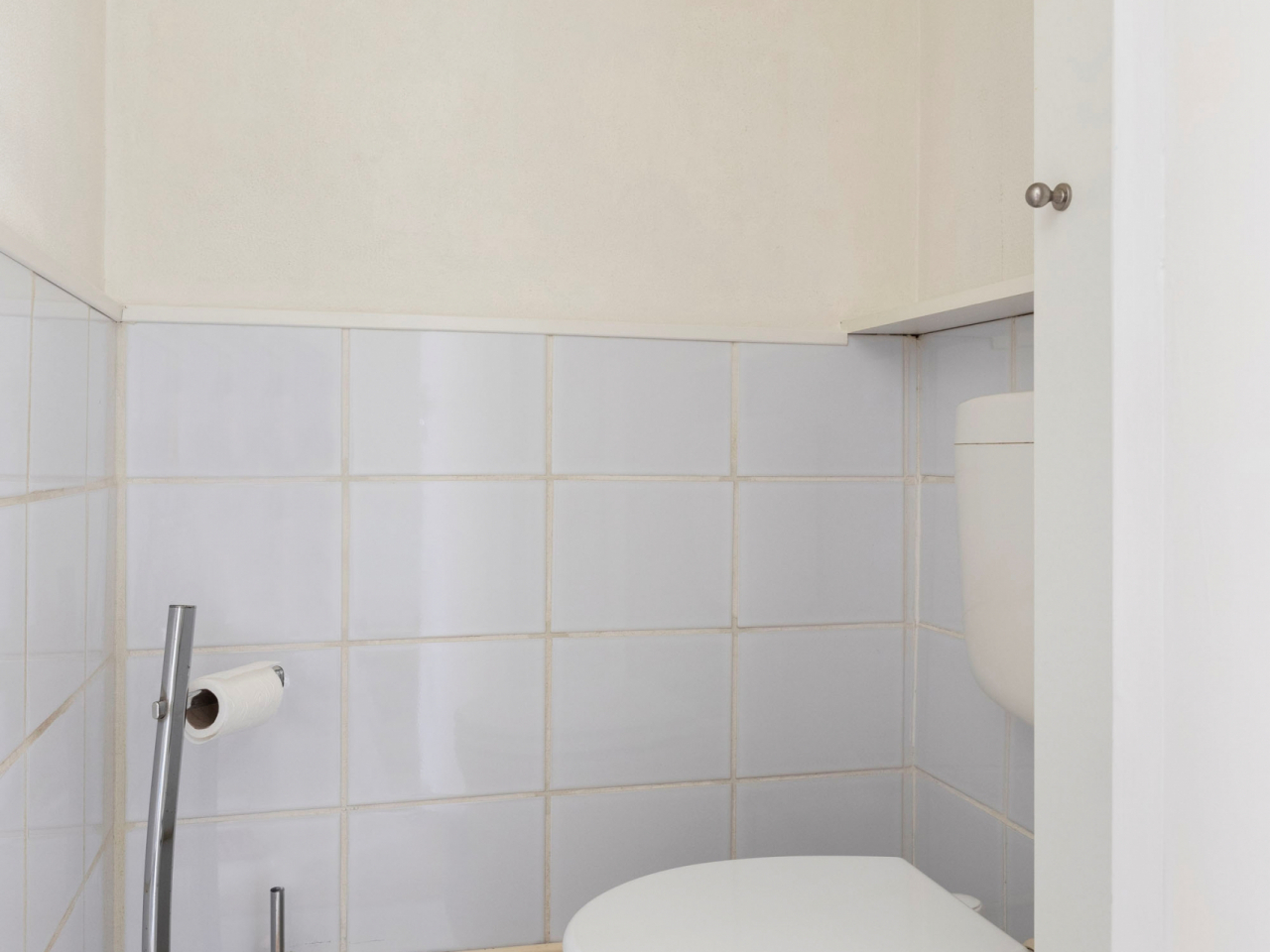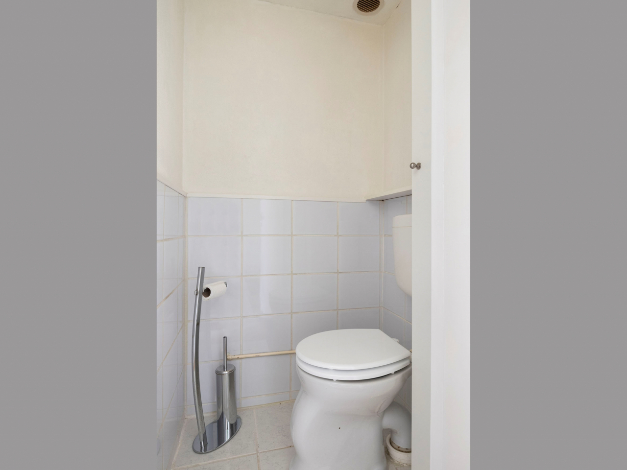Entree, ruime hal die toegang biedt tot de meeste vertrekken, meterkast (5 groepen en een aardlekschakelaar) en intercominstallatie. Half betegelde toiletruimte met staand toilet en ventilatie.