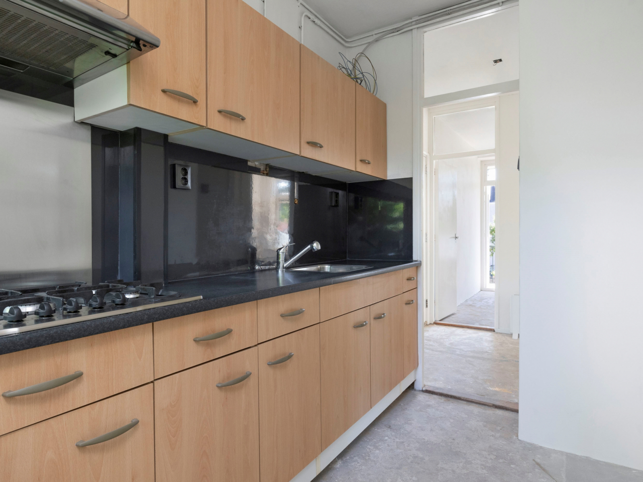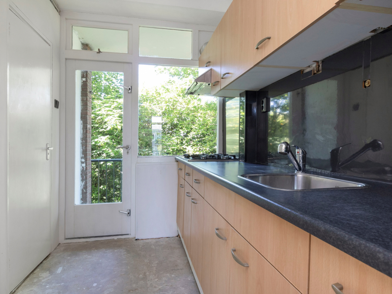 Keuken voorzien van een groot werkblad, spoelbak, 5 pits gaskookplaat, afzuigkap en voldoende opbergkasten. Vanuit de keuken is het achtergelegen grote balkon van ruim 4 meter breed (op het westen) te bereiken. Hier kunt u lekker genieten van de mooie dagen met uitzicht op het groen.