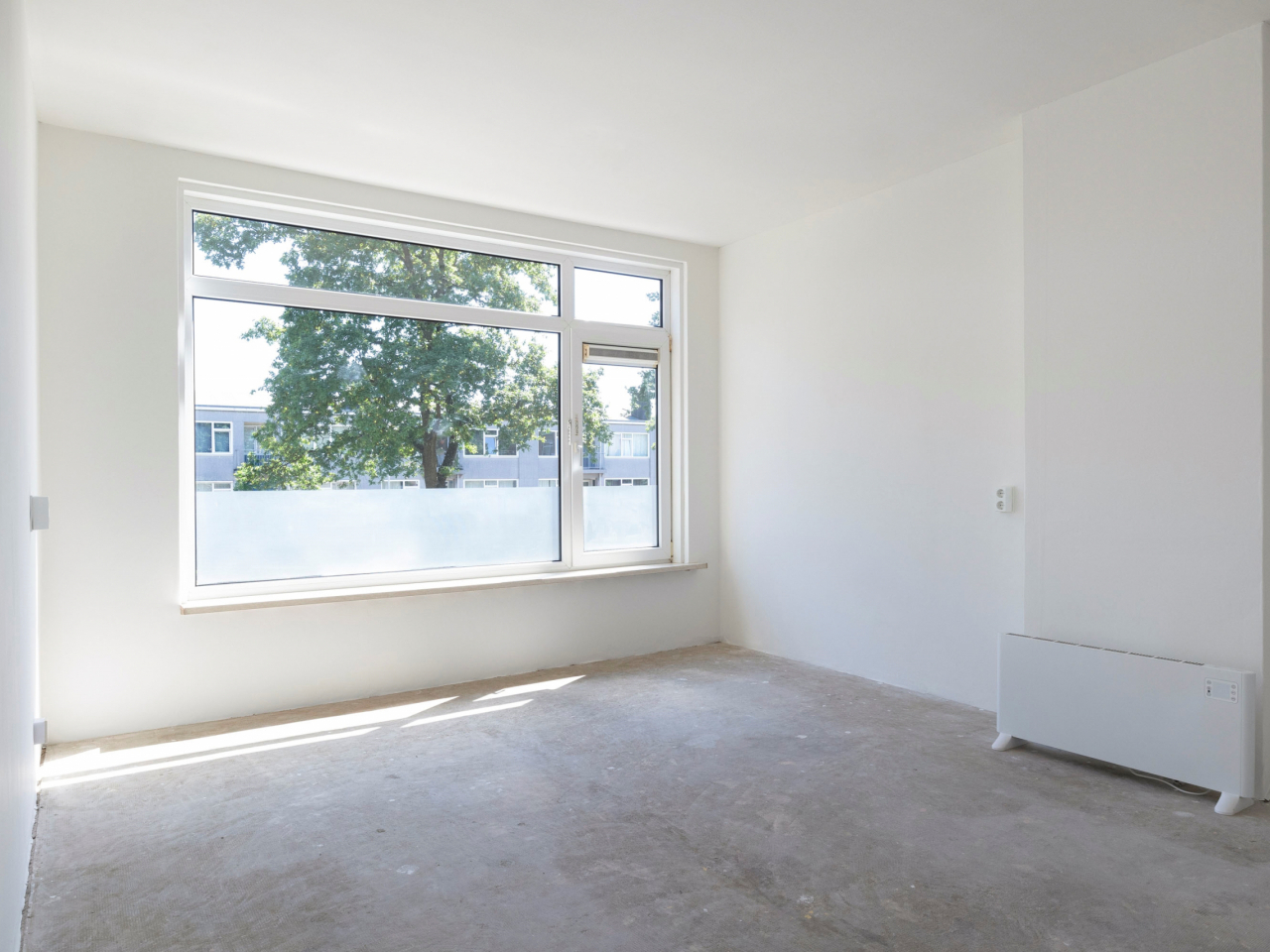 De woonkamer is aan de voorkant gelegen en beschikt over een grote raampartij die voor een mooie lichtinval zorgt. Vanuit de woonkamer is de eerste (grootste) slaapkamer te bereiken.