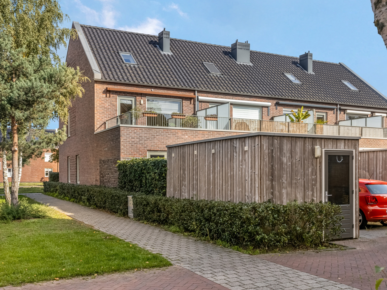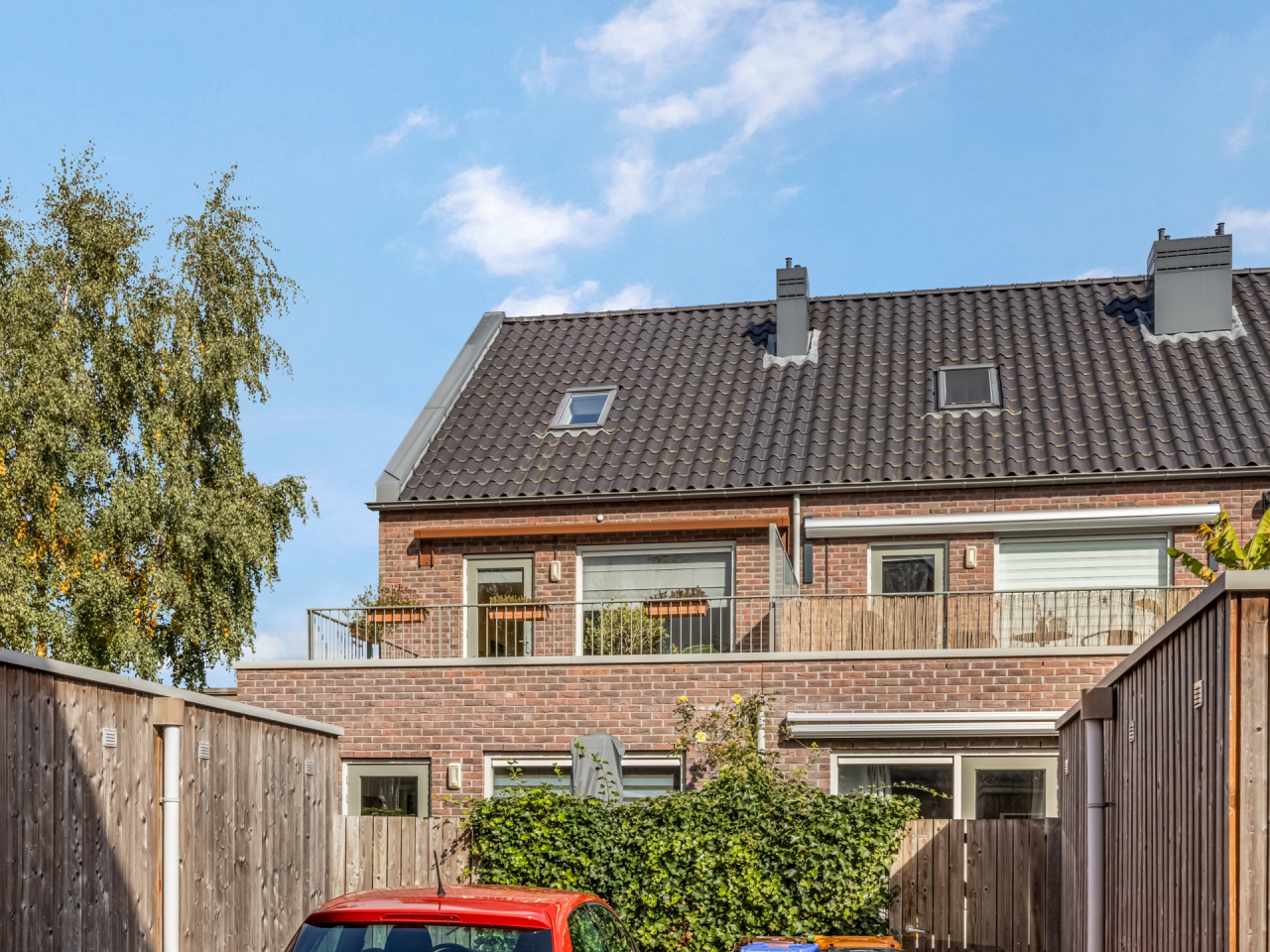 De woning beschikt over een royaal dakterras van 18 m² op het zuiden, een vrijstaande houten berging op de begane grond en er is voldoende openbare parkeergelegenheid in de directe omgeving.