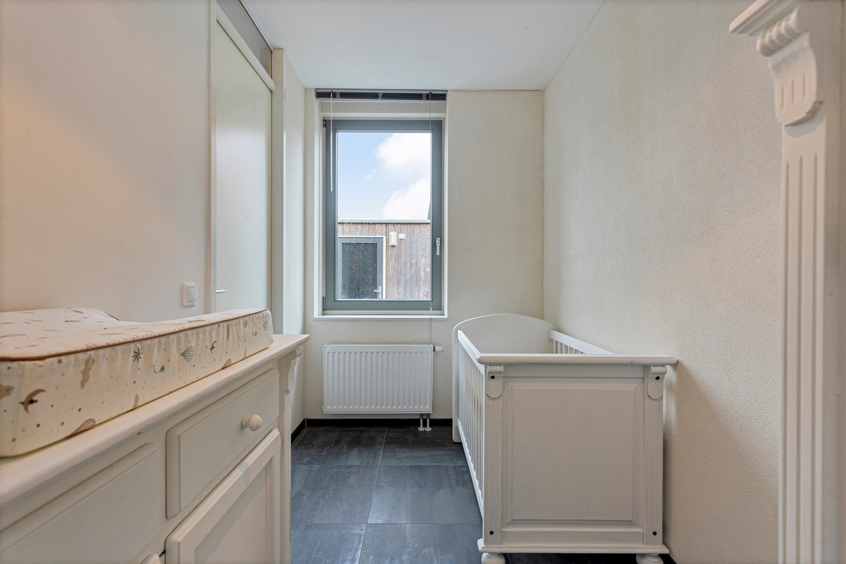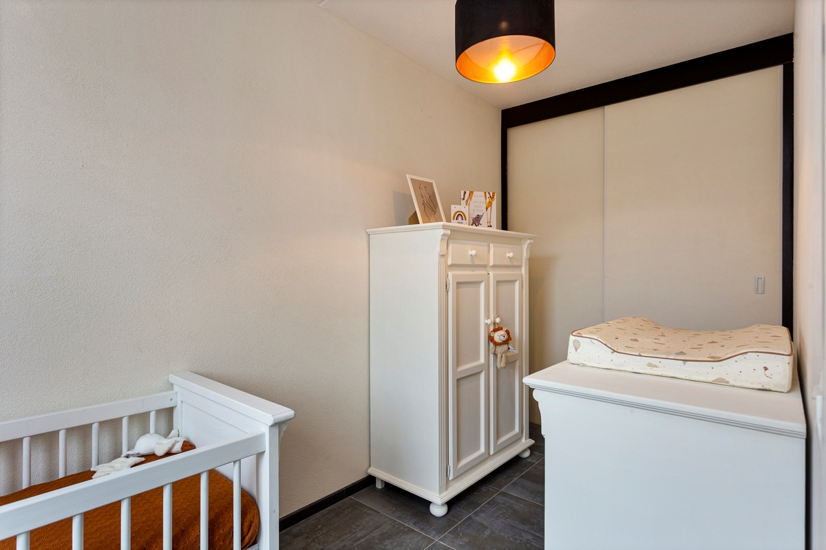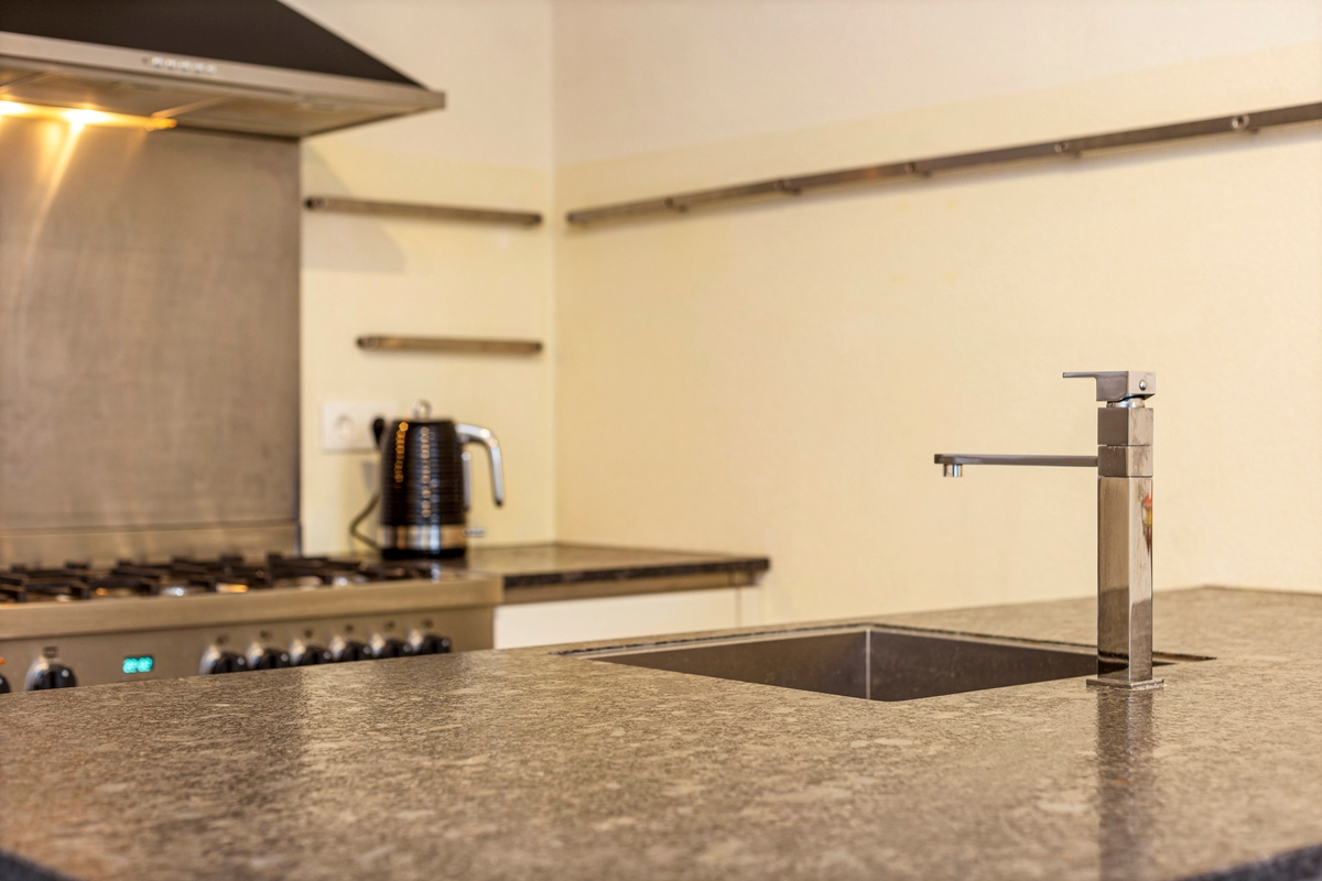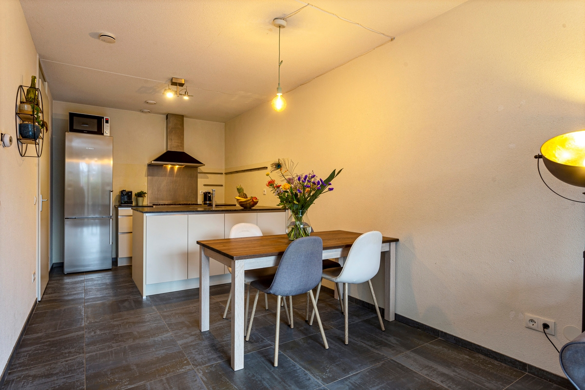 Lekker kokkerellen? De open keuken heeft alles wat u daarvoor nodig heeft. Deze is voorzien van een royaal werkblad, een breed fornuis met maar liefst 6 gaspitten en een grote oven, een afzuigkap, een losse koel/vries- combinatie (Bosch, ter overname), vaatwasser (Bosch) en voldoende opbergkasten met soft-close systeem. Aansluitend aan de keuken is de eethoek. Vanuit de lichte zithoek heeft u toegang tot de achtertuin en tot de tweede slaapkamer die voorzien is van een grote inbouwkast met schuifdeuren.