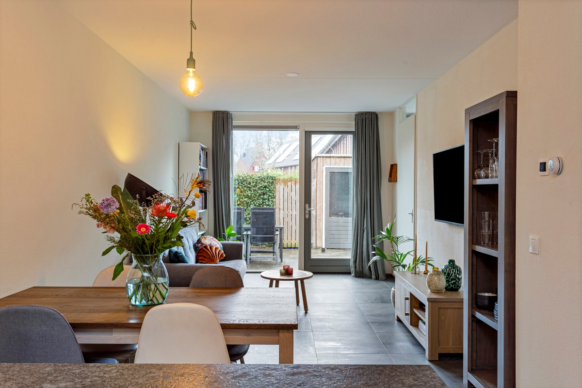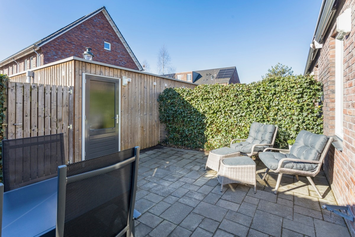 De achtertuin heeft een terras met een gevelbreedte zonnescherm, is gelegen op het zonnige zuiden en biedt veel privacy. Hier kunt u lekker genieten van de mooie dagen.