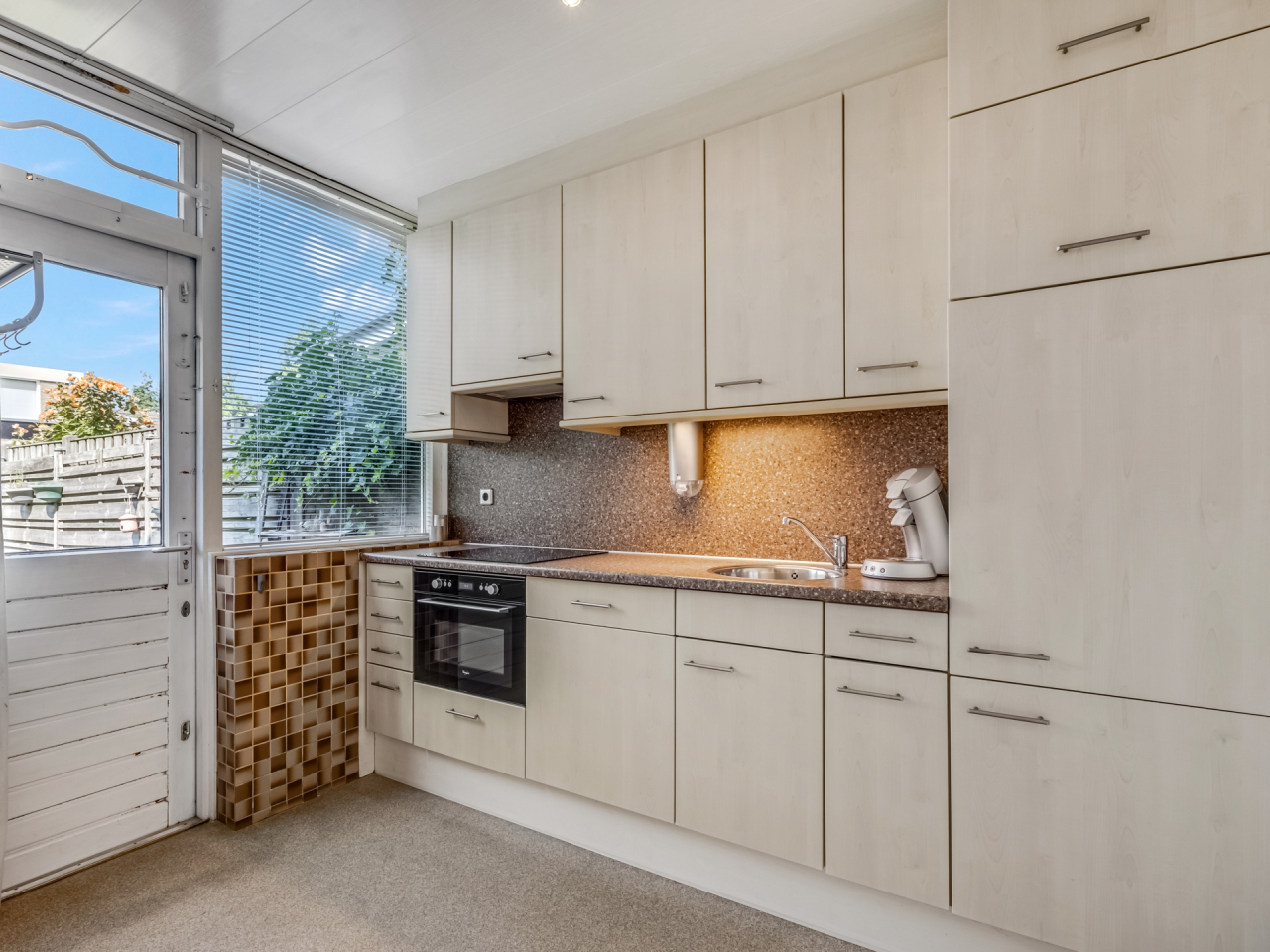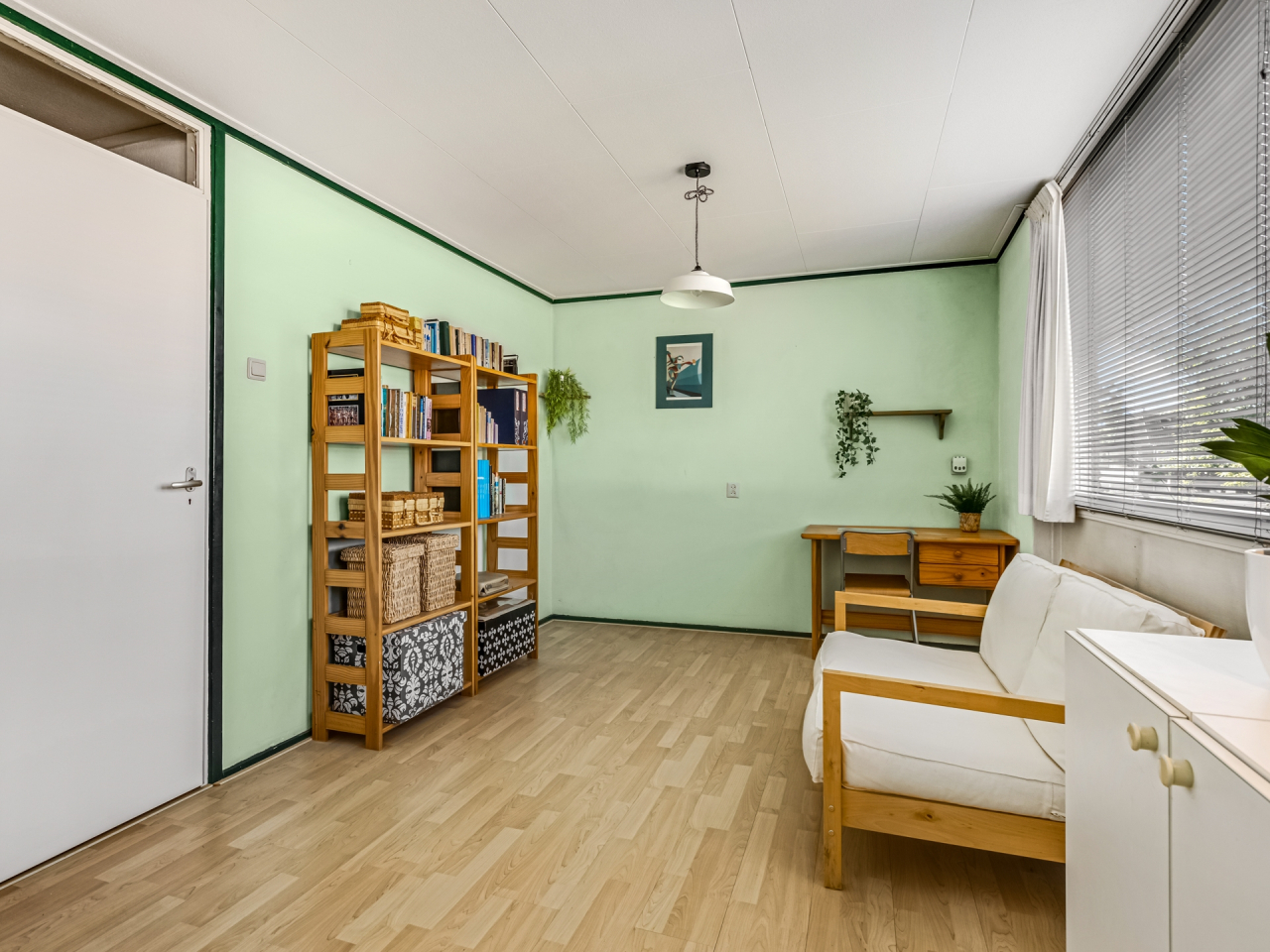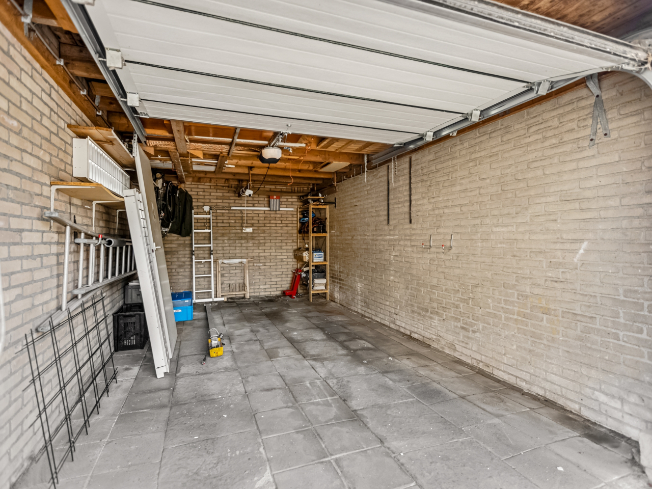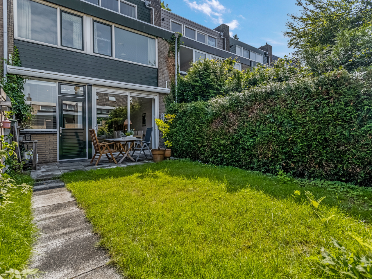 De voortuin kijkt uit op een groenstrook en de groene achtertuin ligt op het zuidwesten. Hier is het heerlijk genieten van de middag- en avondzon. Achter in de tuin is er een vrijstaande stenen berging en een achterom van waaruit u ook naar de garagebox kunt lopen. De garagebox ligt op de linkerhoek van een rij garageboxen.