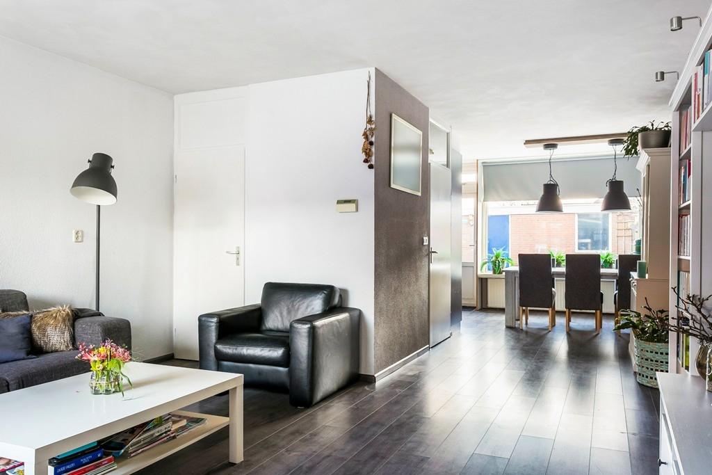 Entree , hal en meterkast. Woonkamer met laminaatvloer (2015) en vaste kast. Keuken met diverse inbouwapparatuur zoals een vaatwasser, koel/vriescombinatie, inductiekookplaat, afzuigkap en combi-oven. Tussenhal met toilet en trap naar de 1e verdieping.
