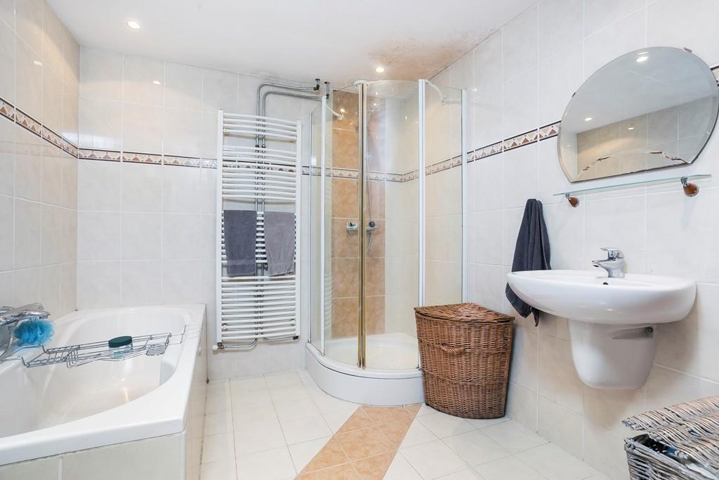 Overloop, 2e toilet, drie ruime slaapkamers voorzien van laminaatvloeren en een royale badkamer met bad, douchecabine en wastafel. Een van de slaapkamers is v.v. een ruime inloopkast.