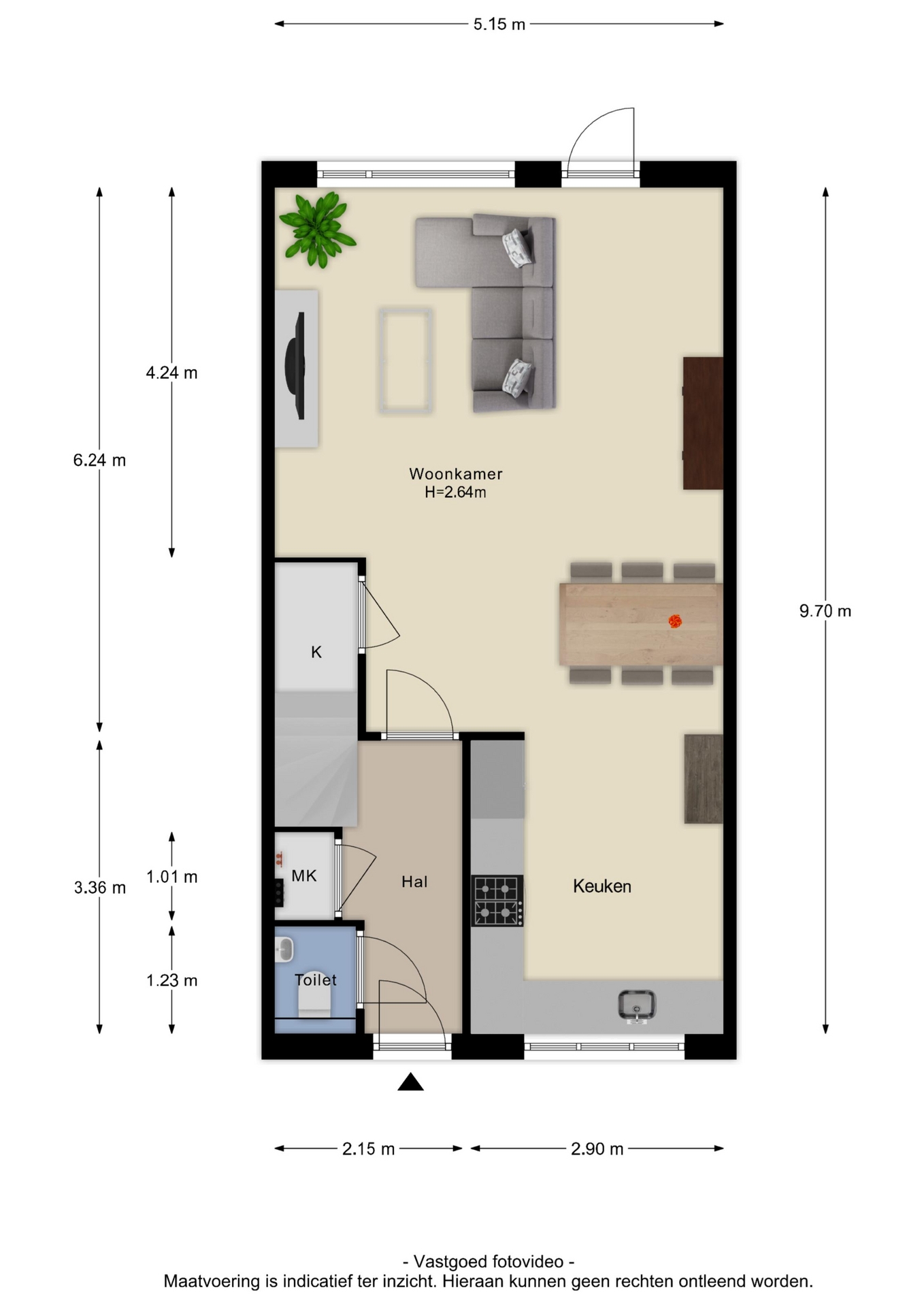 Deze informatie is door ons met de nodige zorgvuldigheid samengesteld. Onzerzijds wordt echter geen enkele aansprakelijkheid aanvaard voor enige onvolledigheid, onjuistheid of anderszins, dan wel de gevolgen daarvan. Alle opgegeven maten en oppervlakten zijn indicatief. Van toepassing zijn de Vastgoed Nederland Consumentenvoorwaarden.