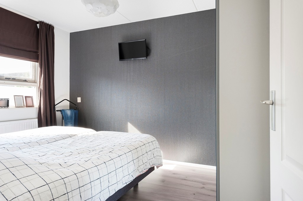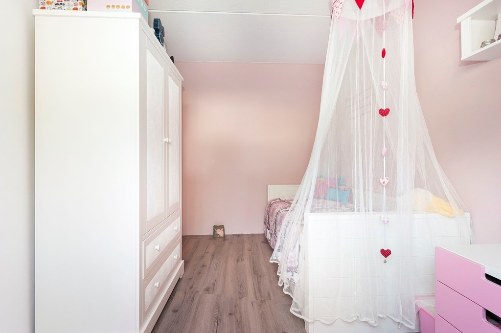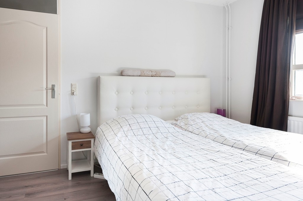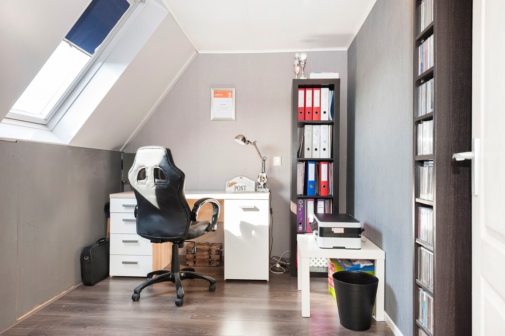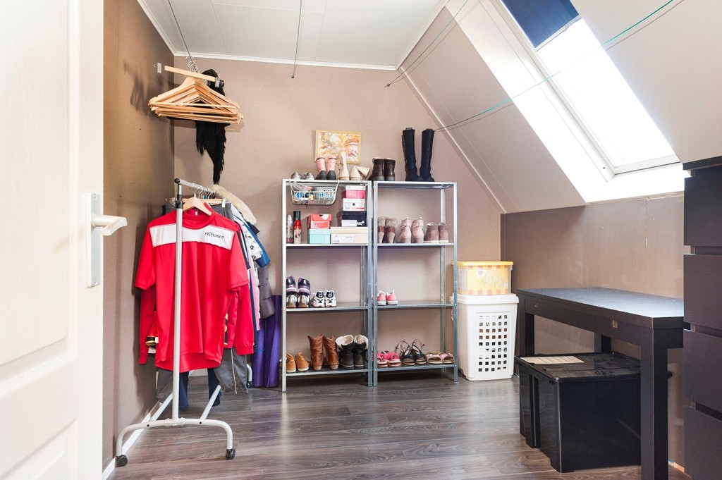 Voorts treft u hier nog 2 slaapkamers aan met laminaatvloeren en bergruimte achter de knieschotten.