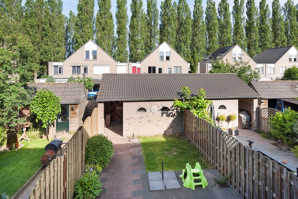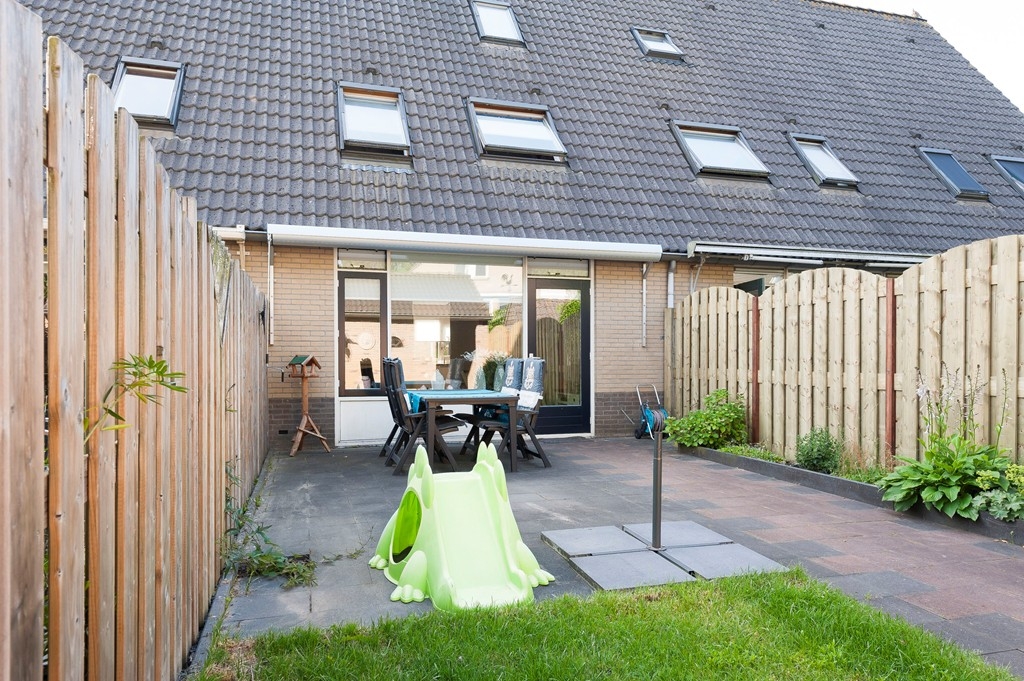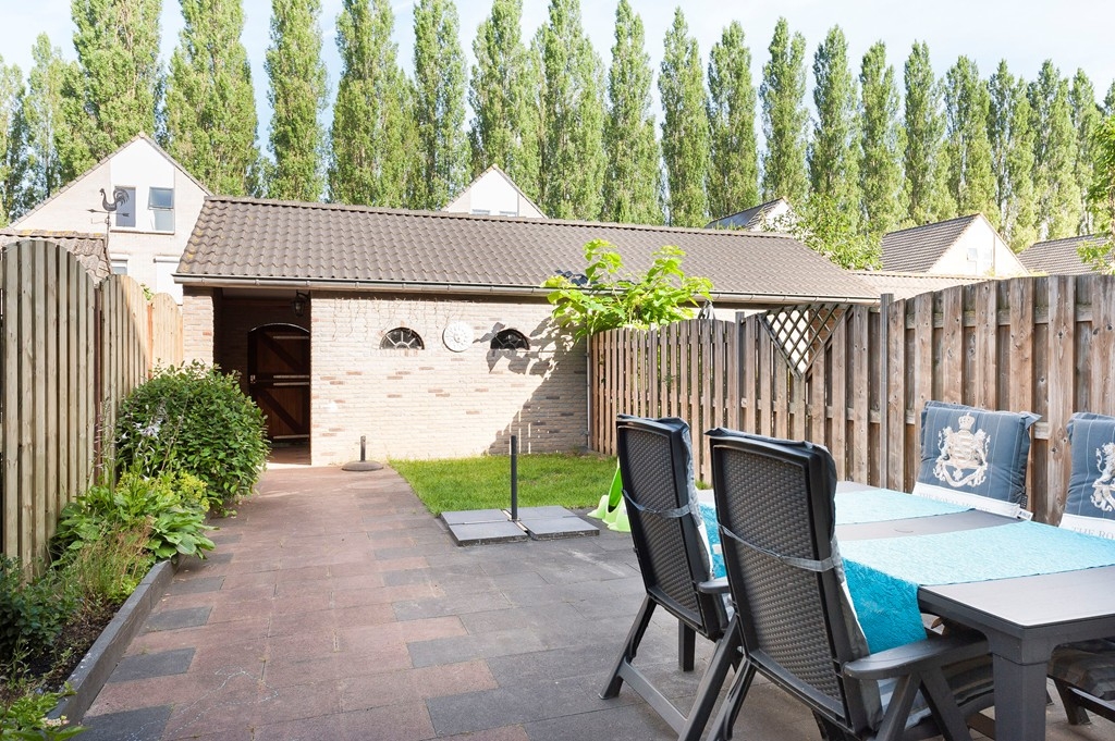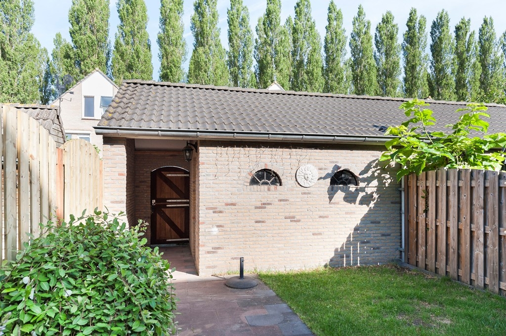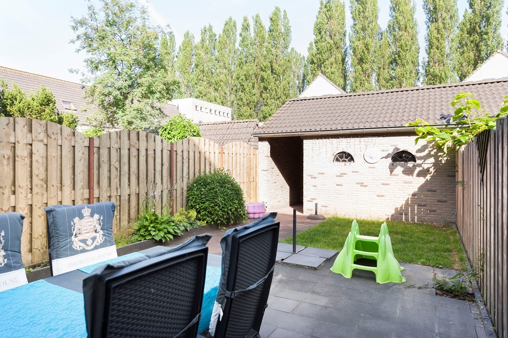 De fraai aangelegde tuin heeft een gunstige ligging op het westen en achterin de tuin staat een extra ruime stenen berging met zolder. Het zonnescherm biedt u voldoende schaduw op het terras.