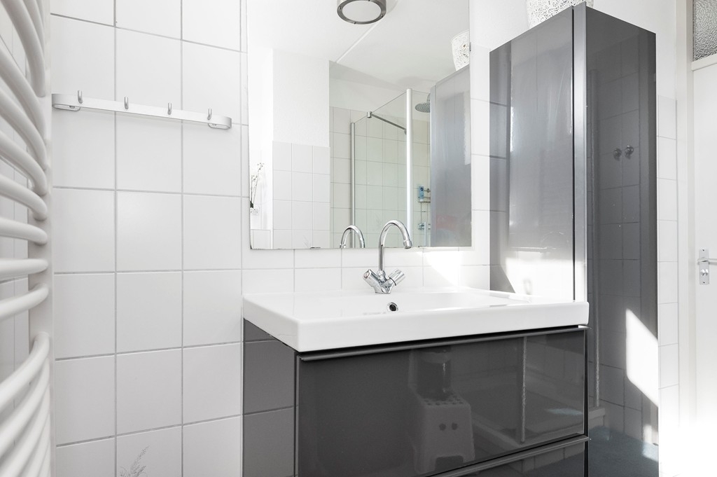 Via overloop toegang tot 3 slaapkamers van een goed formaat. De fraaie badkamer is compleet ingericht en voorzien van een douchecabine, wastafelmeubel en 2e toilet.