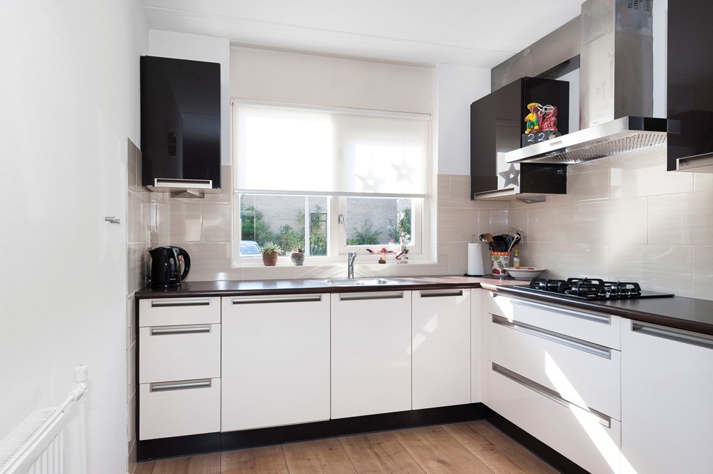 De keuken is in 2009 geheel vernieuwd, aan de voorzijde van de woning gesitueerd en uitgerust met een 4-pits gasfornuis, afzuigkap (2011), vaatwasser, combimagnetron, koelkast en vriezer.