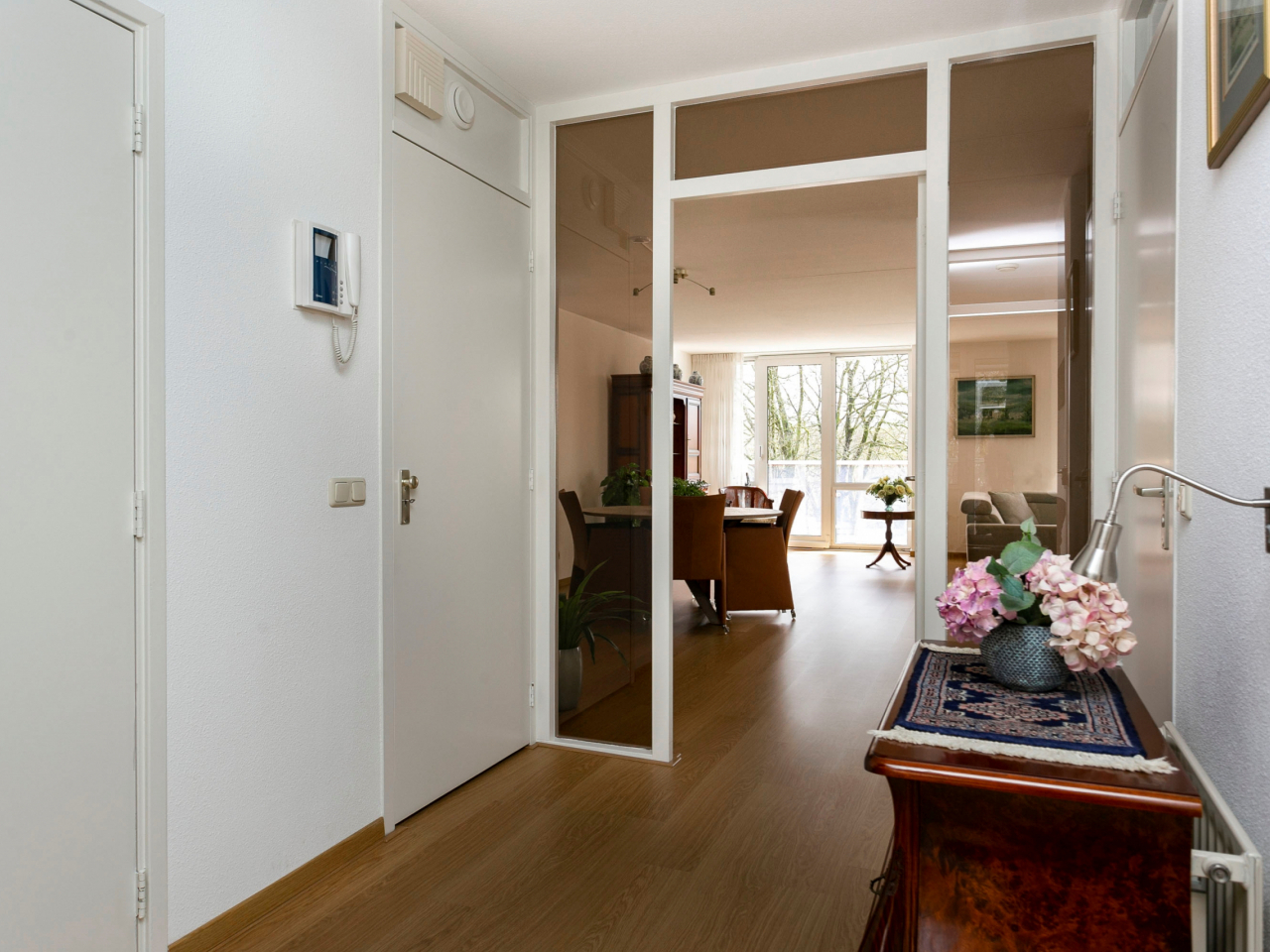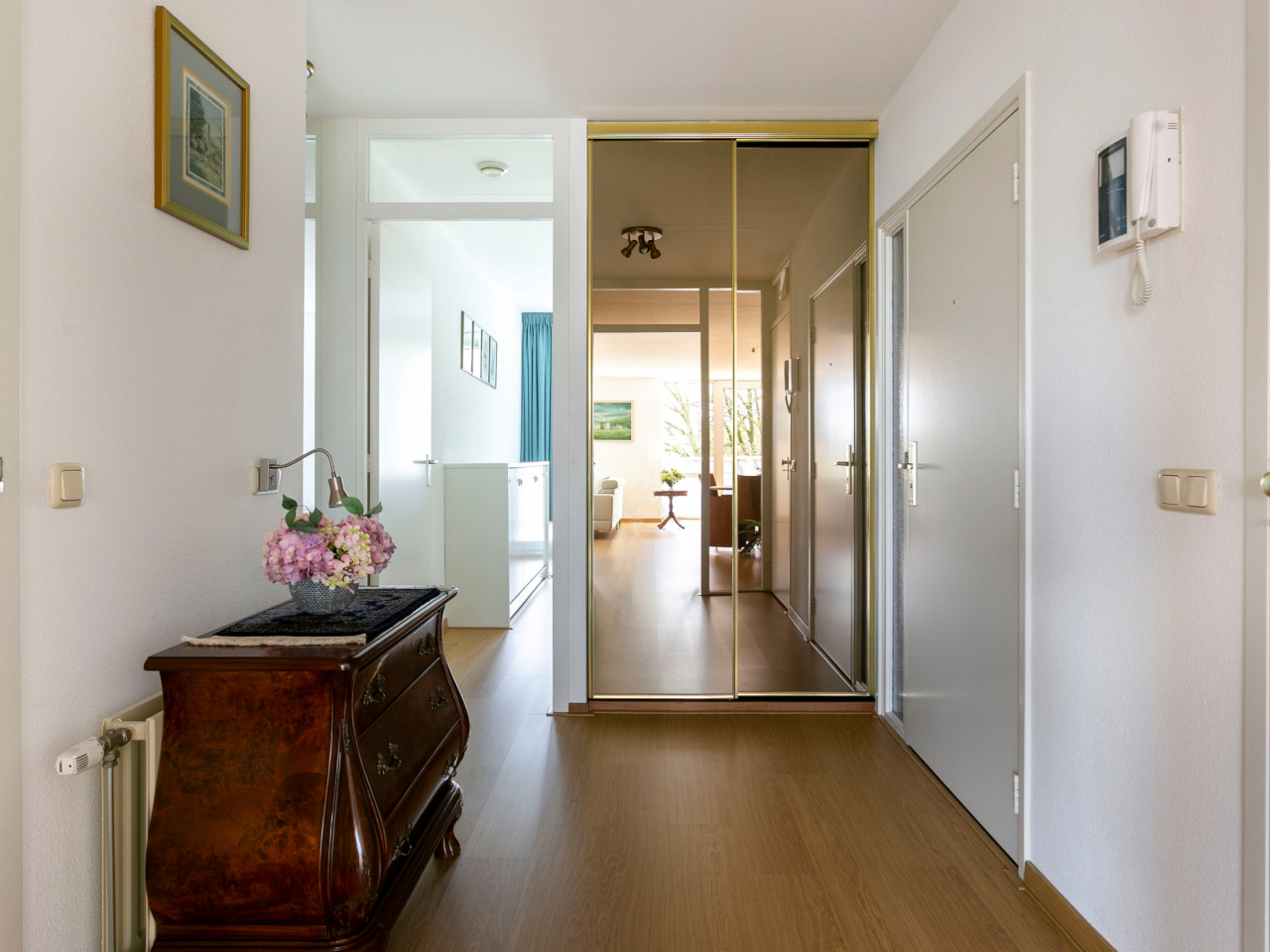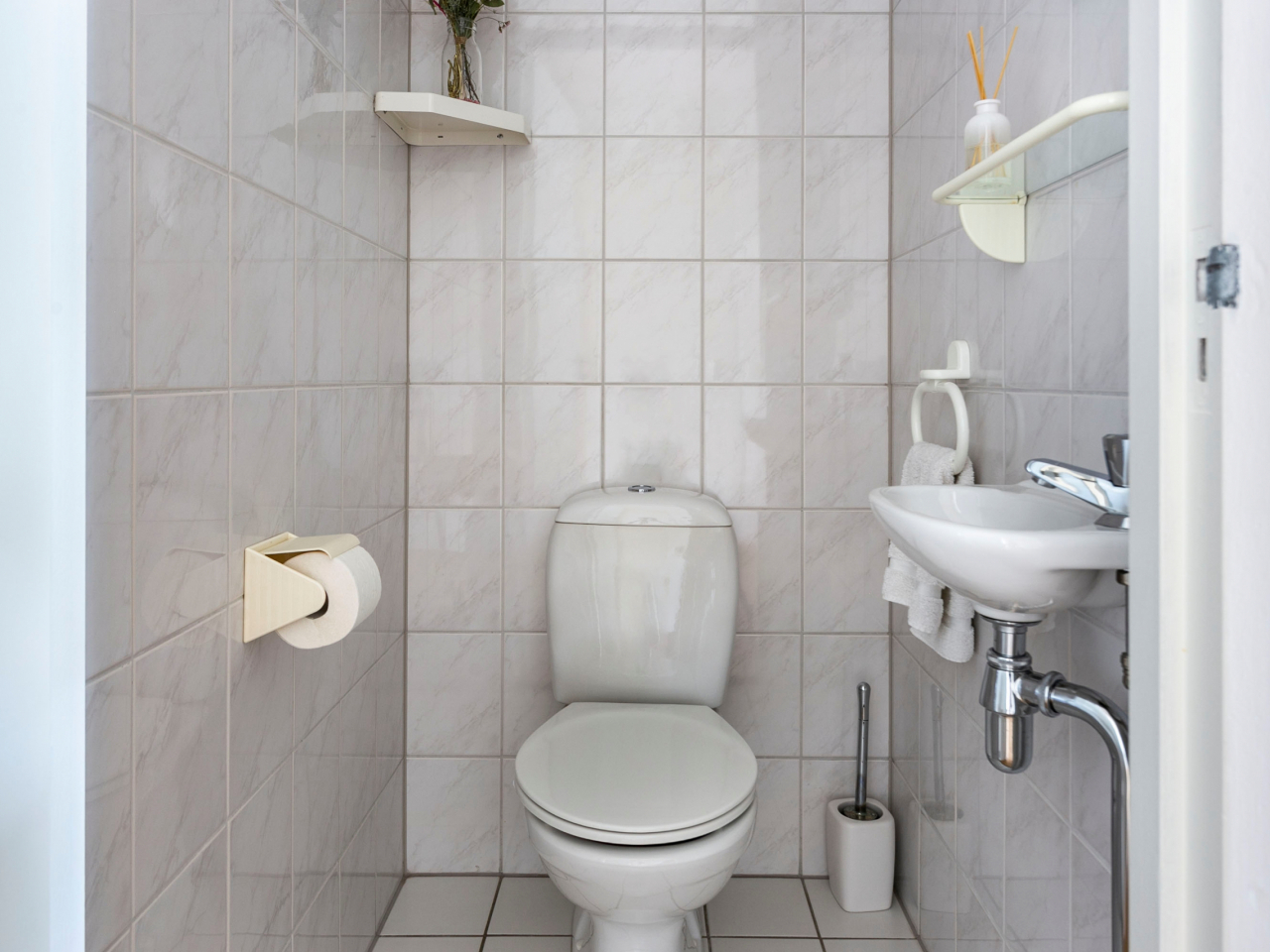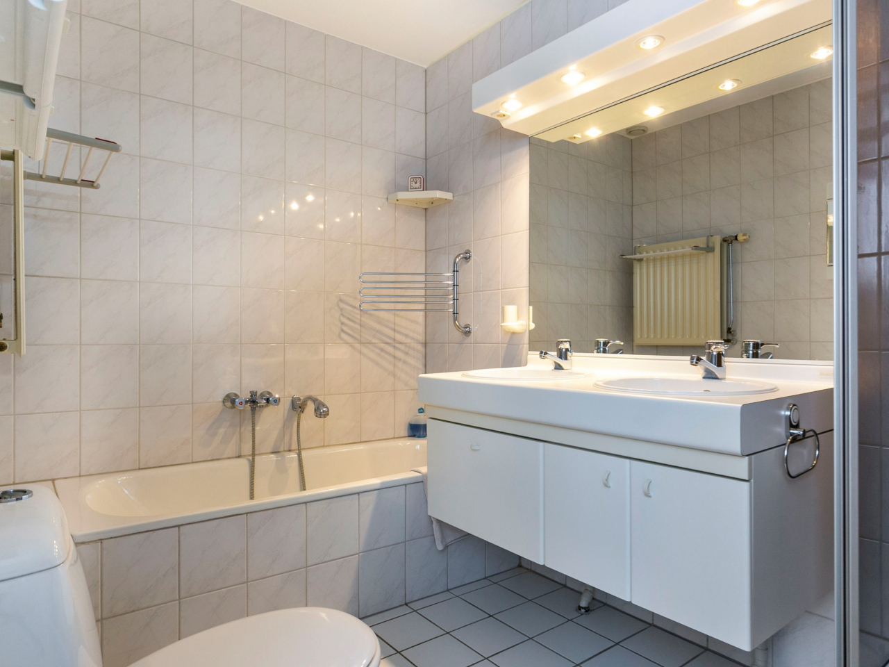 Hal, ruime entree met garderobekast, meterkast, toilet met fonteintje en een technische ruimte met aansluiting voor de wasmachine, mechanische ventilatie en CV-ketel (Intergas, 2017, in eigendom). De royale badkamer is voorzien van een ligbad, een separate douchecabine, dubbel wastafelmeubel en een tweede toilet. De grootste slaapkamer is voorzien van airconditioning. De tweede slaapkamer (thans in gebruik als kantoorruimte) is v.v. een deur naar het balkon aan de achterzijde van het complex. Hier is ook zonwering aanwezig.