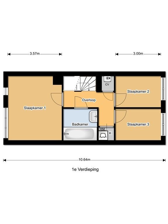 Op de verdieping vindt u maar liefst 3 slaapkamers. Op de overloop bevinden zich verder een berging met CV-ketel (Bosch, 2009), een praktische opbergkast met aansluiting voor wasmachine en droger en de badkamer. De badkamer is voorzien van een wastafel, een bad en een radiator.