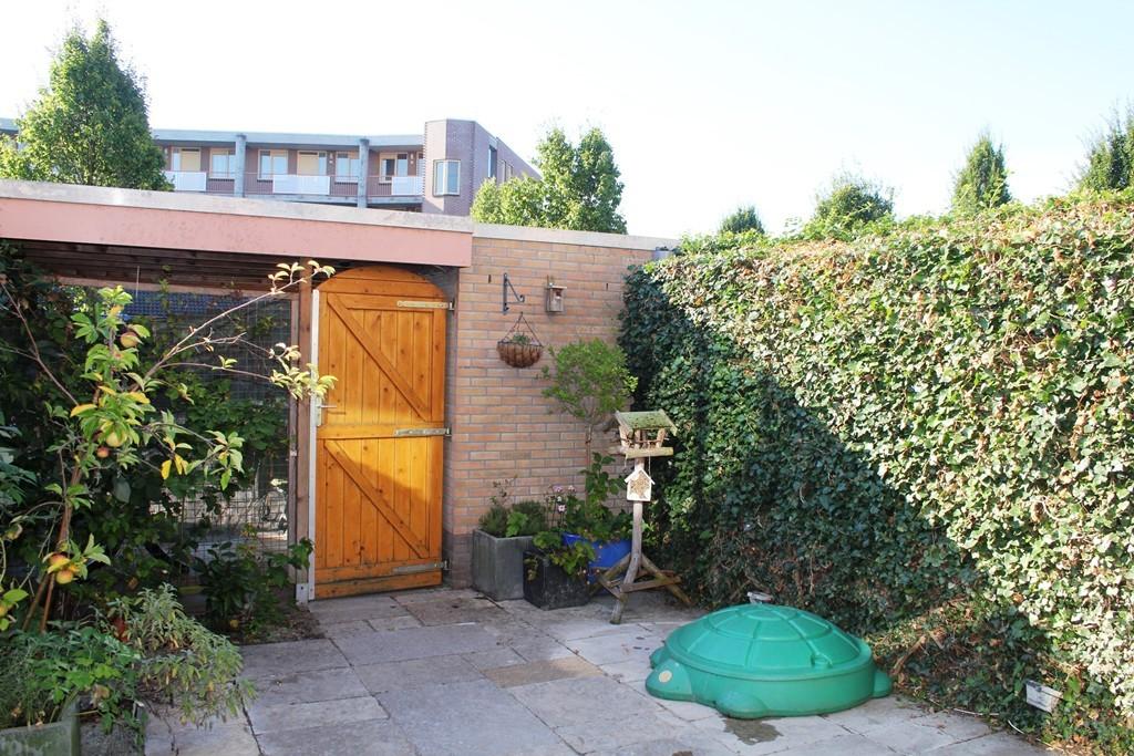 De zonnige achtertuin (ca. 30 m2) is gelegen op het zuiden en is te bereiken via zowel de woonkamer als de carport. De tuin is onderhoudsvriendelijk aangelegd door middel van bestrating en biedt mede vanwege de achtergelegen parkeerplaats voor vergunninghouders een aangename rust, ondanks de nabijheid van het centrum. Via de carport bereikt u de vrijstaande stenen berging.