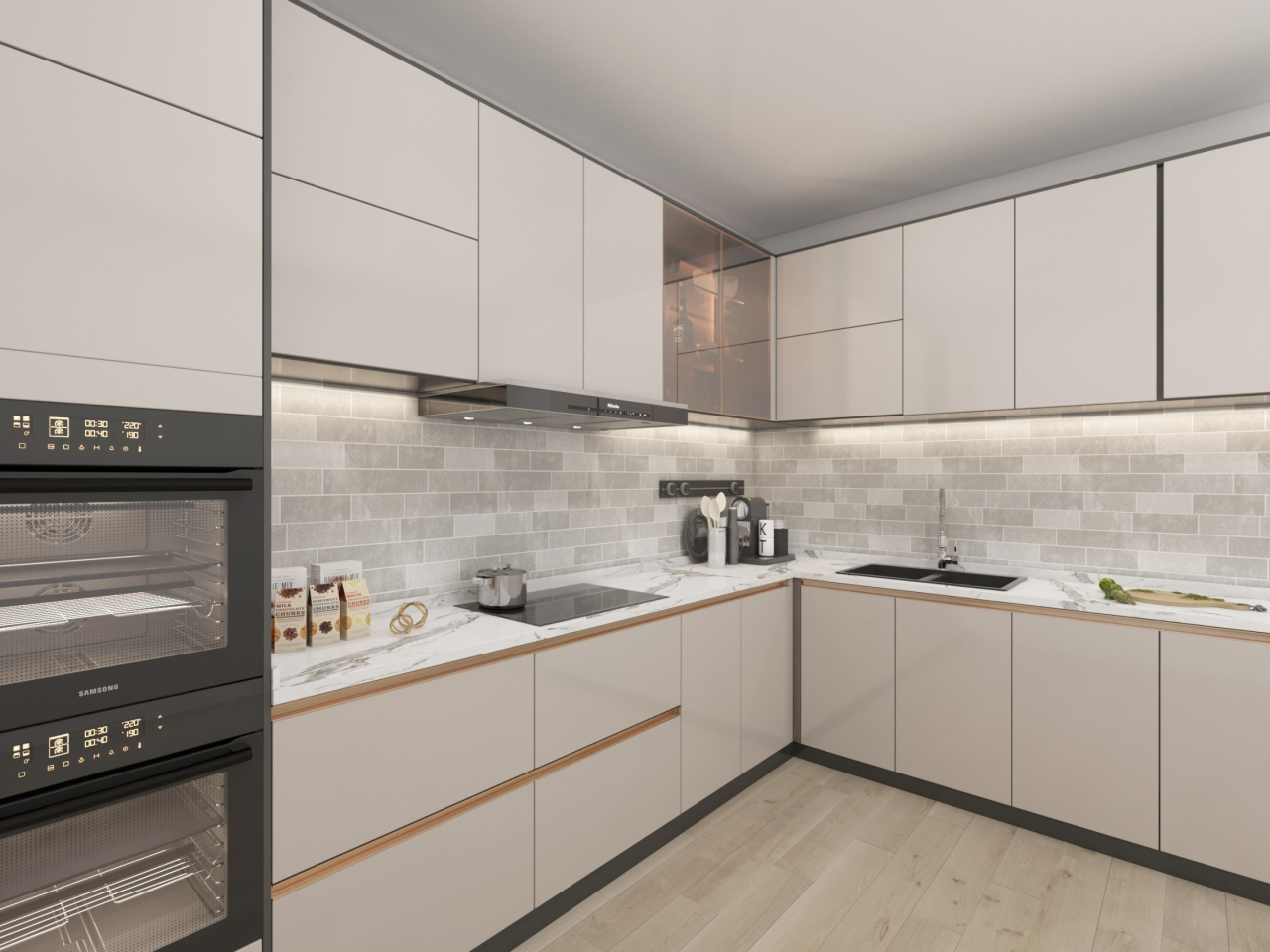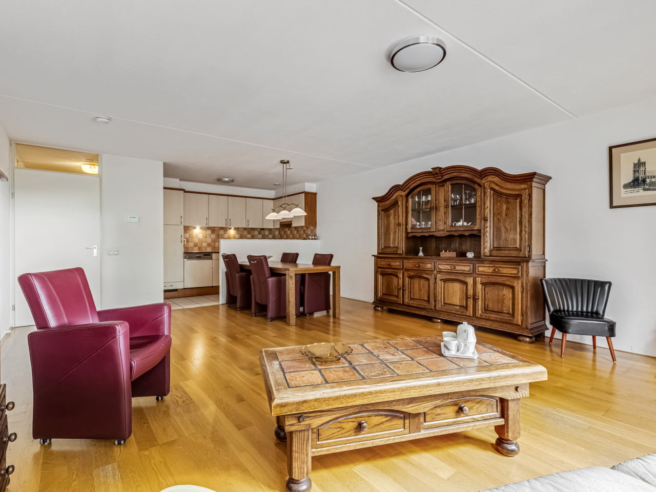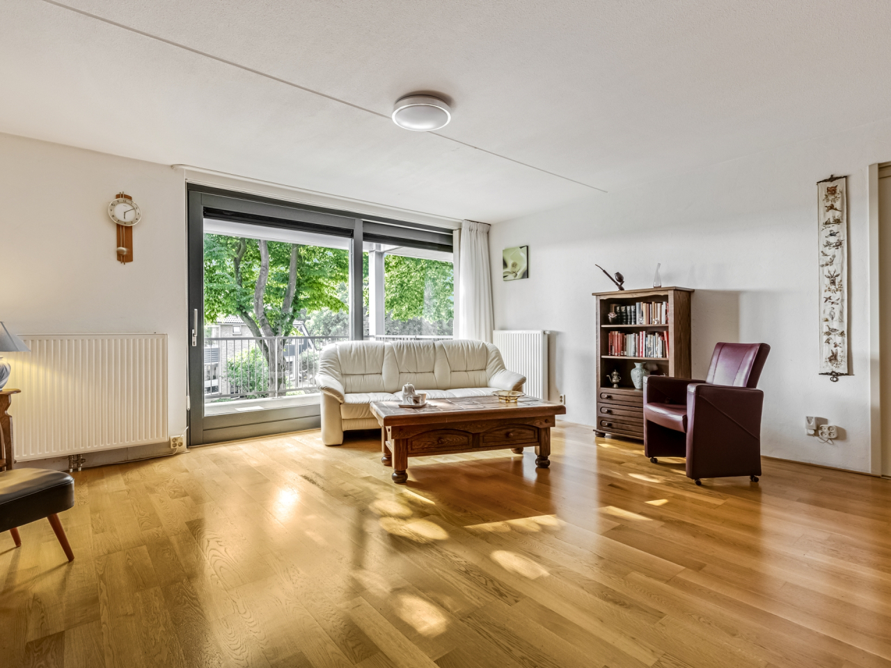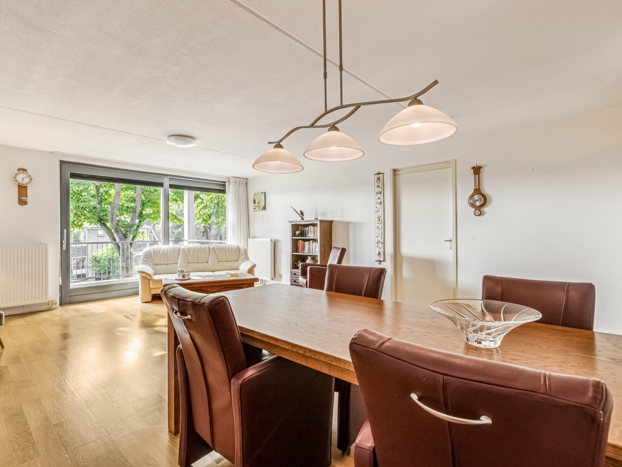 Open keuken voorzien van een wasbak, inductie kookplaat, afzuigkap, oven, koelkast en voldoende opbergkasten. Zeer royale woonkamer met schuifpui die toegang biedt tot het ruime balkon (10 m²) met uitzicht over de tuin en op het speeltuintje bij de Anton Mauvestraat. Het balkon is gelegen op het zuidwesten maar wordt door een paar bomen enigszins afgeschermd tegen overmatige zon en warmte. Via de 2e hal komt u bij de overige ruimten. Een grote master bedroom met ruimte voor een kledingkast en kleinere tweede slaapkamer. De badkamer is tot het plafond betegeld en beschikt over een wastafelmeubel, spiegelkast, douchecabine met handdouche, radiator en mechanische ventilatie. Separaat toilet met fonteintje en ventilatie.