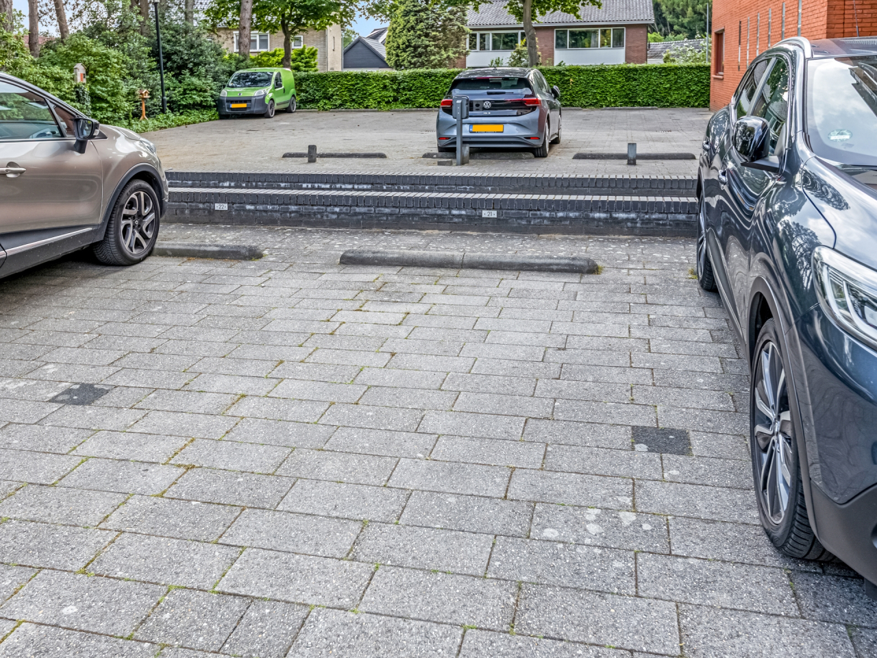 Eén privé parkeerplaats en enkele parkeerplaatsen bestemd voor bezoekers bij het appartementencomplex zelf.