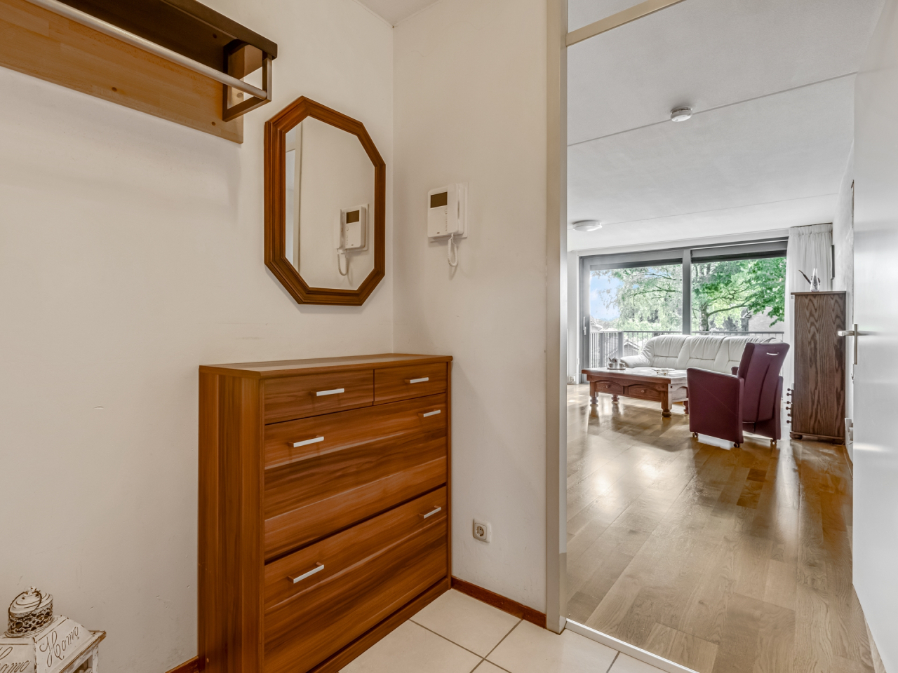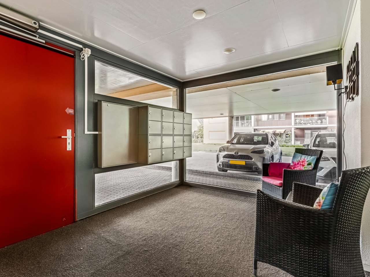 Het moderne en kleinschalige appartementengebouw is omringd door een groene en goed onderhouden tuin en een parkeerterrein met een privé parkeerplaats. Familie en vrienden die langskomen, kunnen gebruikmaken van de parkeerplaatsen die bestemd zijn voor bezoekers. De afgesloten gemeenschappelijke entree met brievenbussen heeft een mooie uitstraling. Bezoekers dienen zich eerst aan te melden via de intercom met camera, zodat u zowel kunt zien als horen wie er voor de deur staat. U kunt kiezen tussen de trap of lift om het appartement, gelegen op de eerste verdieping, te bereiken. In de onderbouw heeft u de beschikking over een eigen berging voorzien van elektra.
