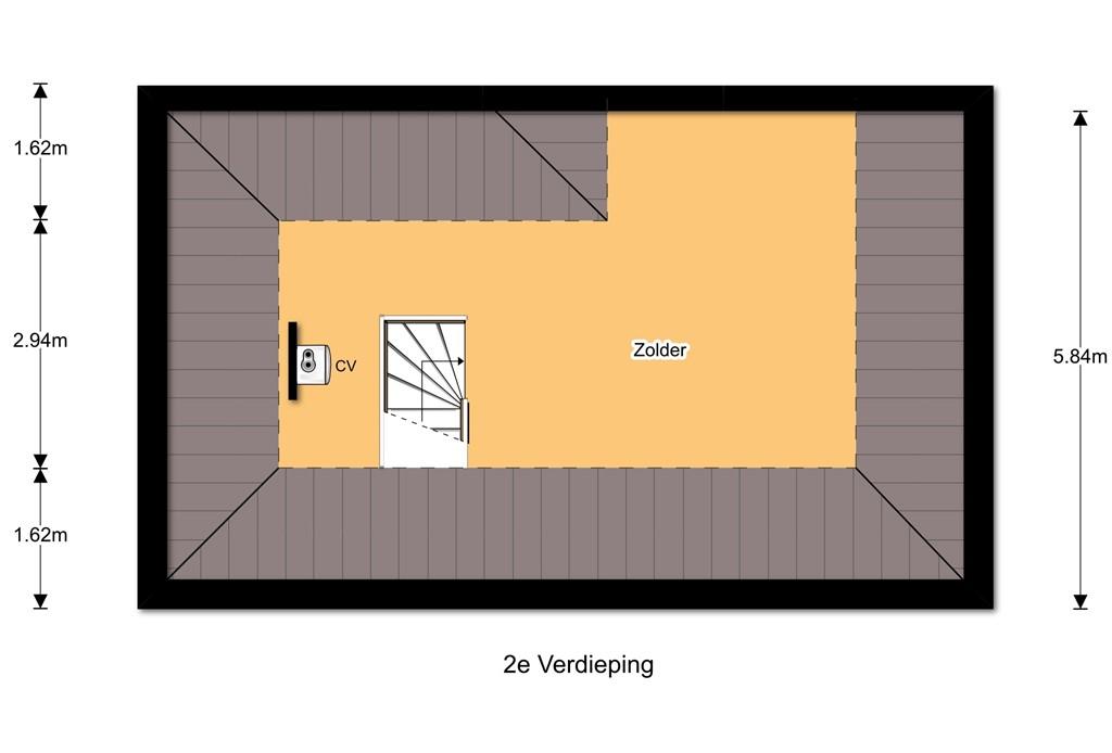 Ruime zolder met mogelijkheid voor extra slaap- of hobbykamer.