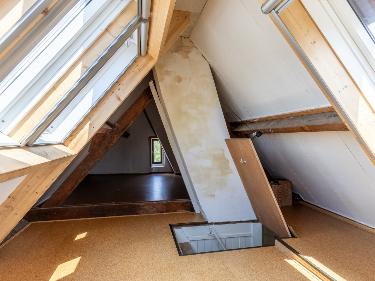 Via een vaste, vrij steile trap bereikt u de zolder. De zolder is voor een deel op stahoogte en beschikt over 4 kunststof dakramen met elektrische zonweringen. Hier zou nog prima een dakkapel geplaatst kunnen worden voor extra ruimte.
