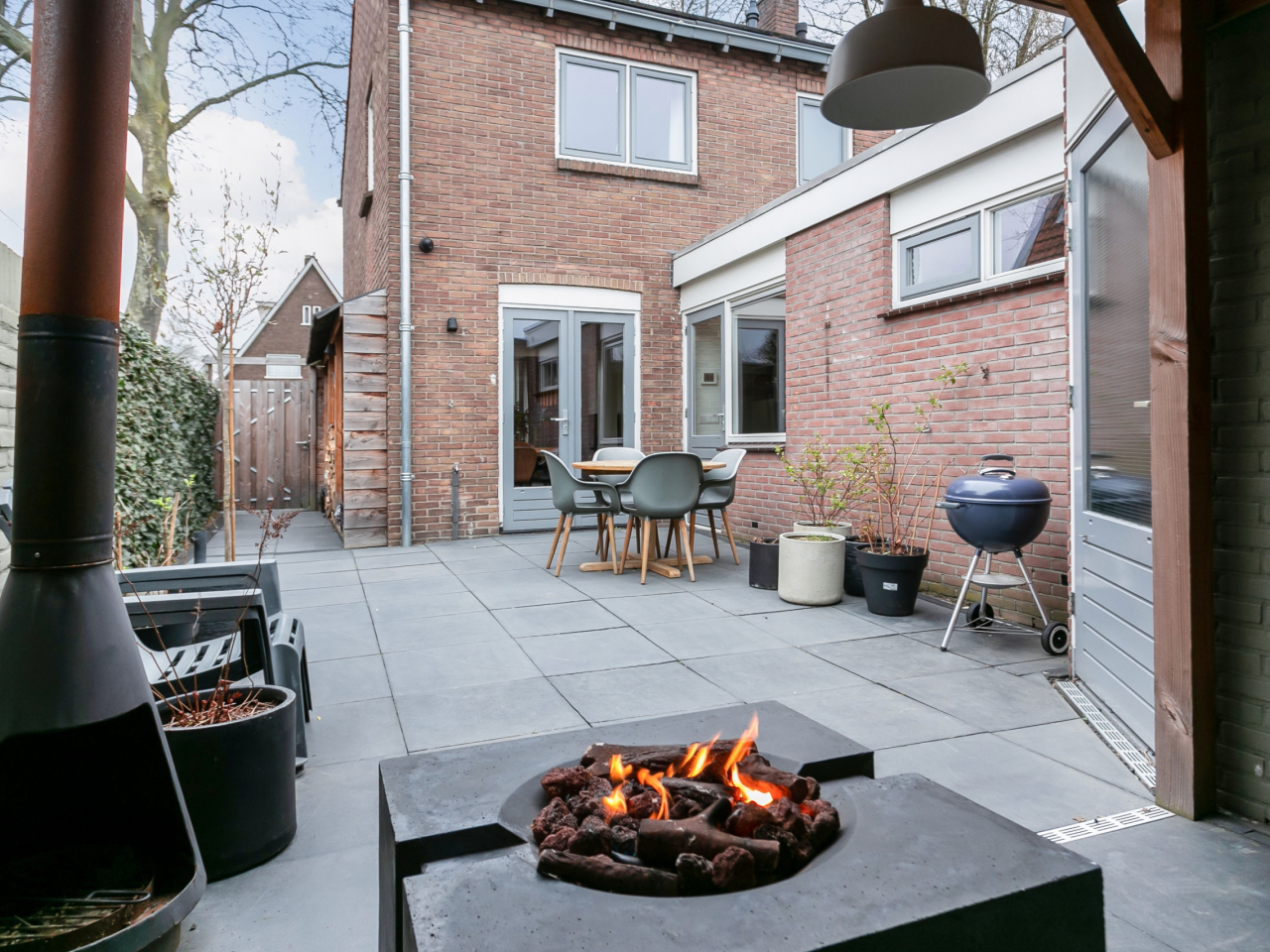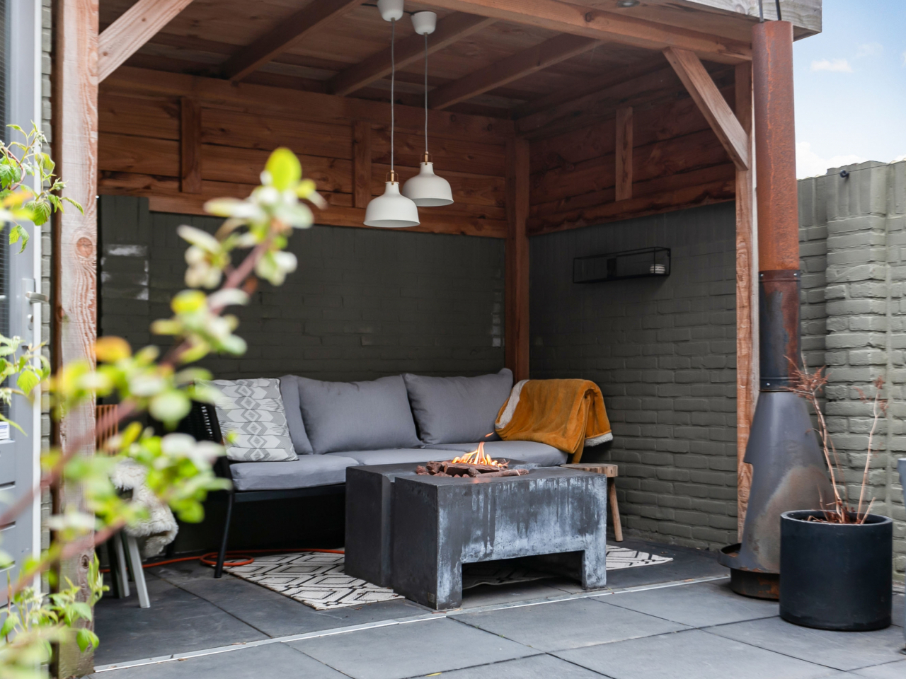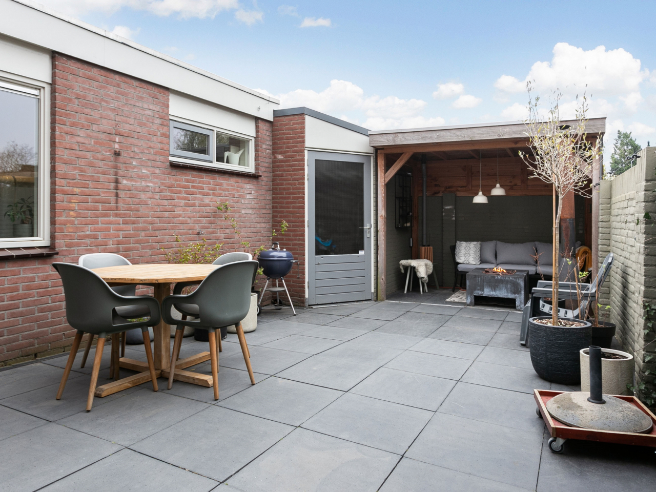 In de aangebouwde stenen berging met water, elektra en verwarming kunnen fietsen en tuingereedschappen opgeborgen worden. Achterin de tuin bevindt zich een gezellige veranda om te genieten van de mooie dagen. In de zij-tuin is er nog een overkapping voor houtopslag. De poort en deur van de schuur zijn verbreed.