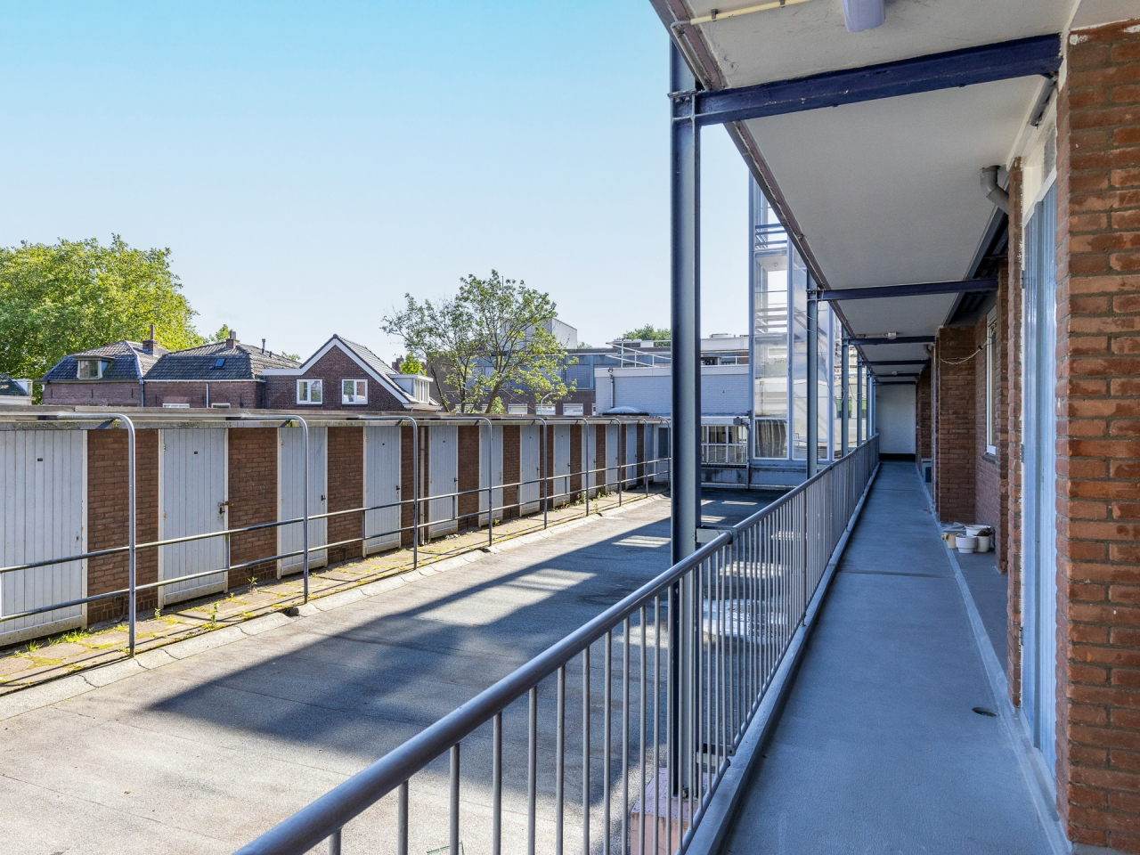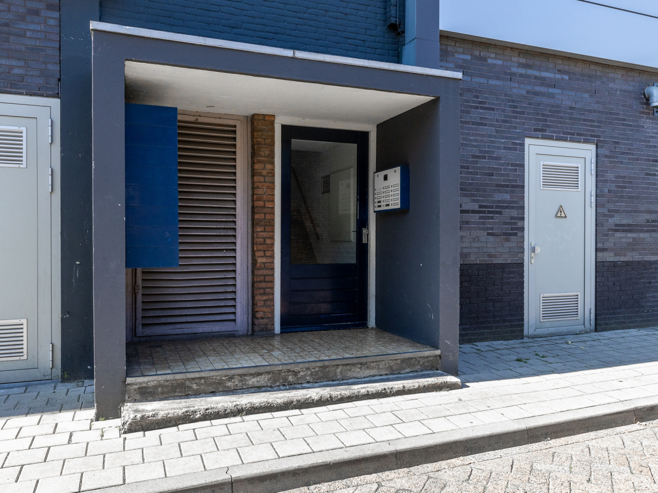 Centrale entree met brievenbussen en beltableau. Het gebouw is eveneens voorzien van een lift vanaf de eerste verdieping. Dit appartement bevindt zich aan het eind van de galerij waardoor er geen andere mensen langs het appartement lopen. Heerlijk rustig dus!