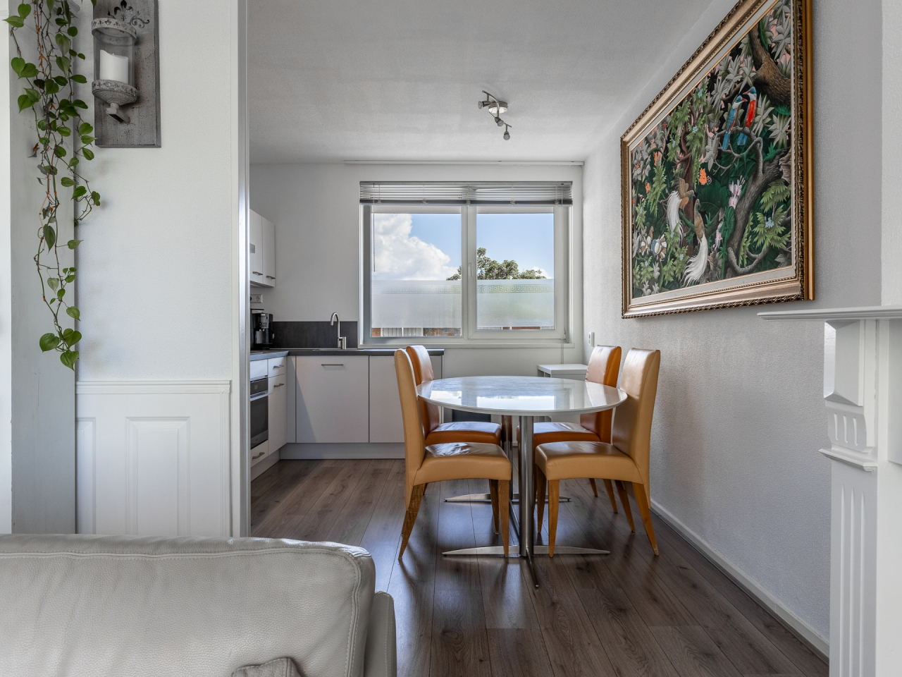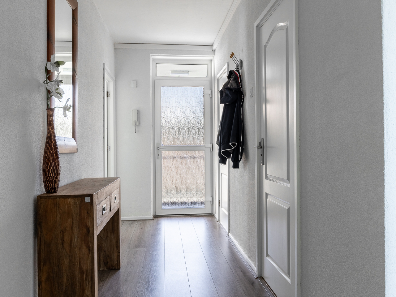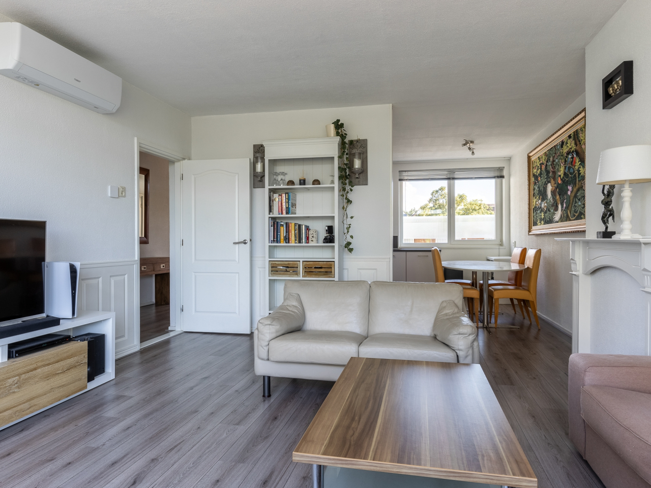 De entree met ruime hal biedt toegang tot alle vertrekken. De woonkamer met open keuken is in lichte kleurstelling uitgevoerd en beschikt over een mooie laminaatvloer, chique lambrisering, een schouw en een grote raampartij waardoor er voldoende daglicht aanwezig is. Tevens is er een weids uitzicht aan de voorzijde van het appartement. Als bonus heeft de woonkamer ook nog airconditioning. Heerlijk tijdens de warme dagen. De woonkamer biedt toegang tot het balkon, dat op het noorden gelegen is.